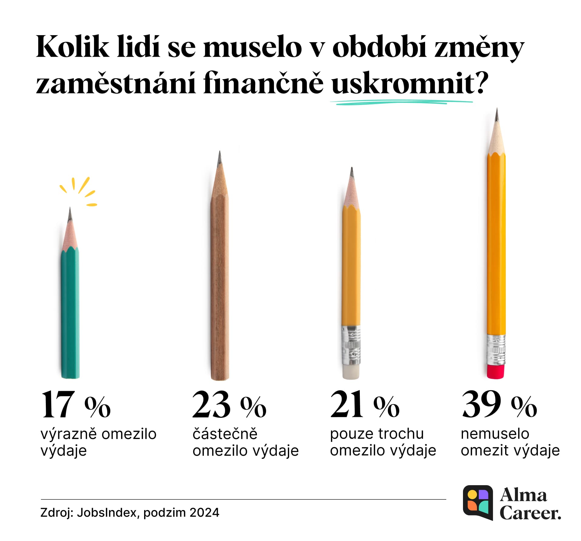 Řada zaměstnanců „čeká na výpověď“ a na odstupné. To by jim pomohlo překlenout dobu hledání nového místa. Nicméně data ukazují, že s odstupným od zaměstnavatele odchází při ukončení spolupráce pouze 17 % lidí. Změna místa tak u více než 60 % zaměstnanců znamená nutnost omezení výdajů v období mezi ukončením pracovního poměru a nástupem do nové práce.