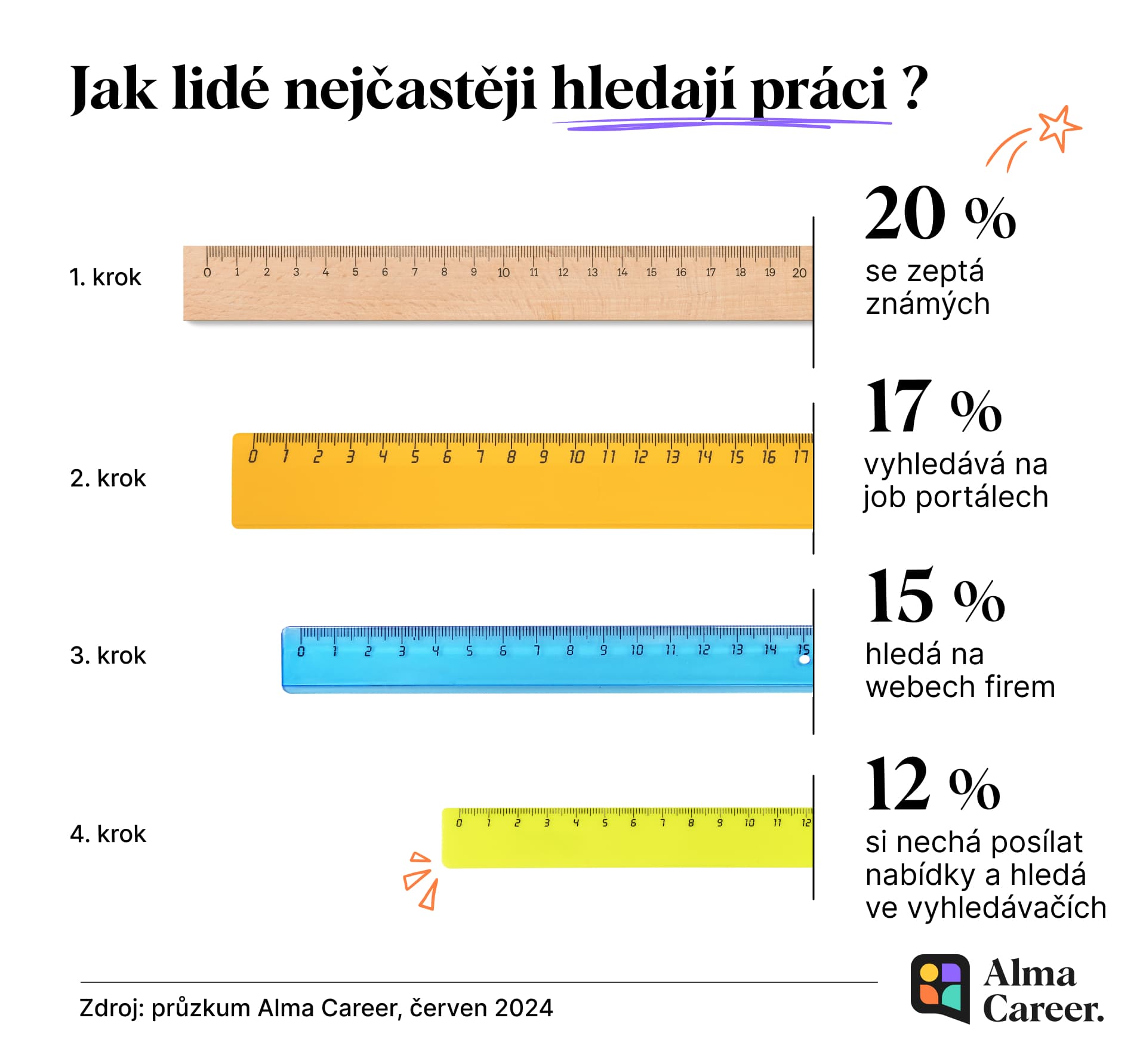 Když si už lidé hledají nové zaměstnání, ať dobrovolně, nebo z nutnosti, většina tak stále činí vlastními silami, bez pomoci úřadu práce – vloni takový postup zvolily více než dvě třetiny z těch, kteří práci nakonec změnili. Univerzální postup neexistuje, ale data z průzkumu Alma Career ukazují, že největší důvěře se těší tři zdroje: