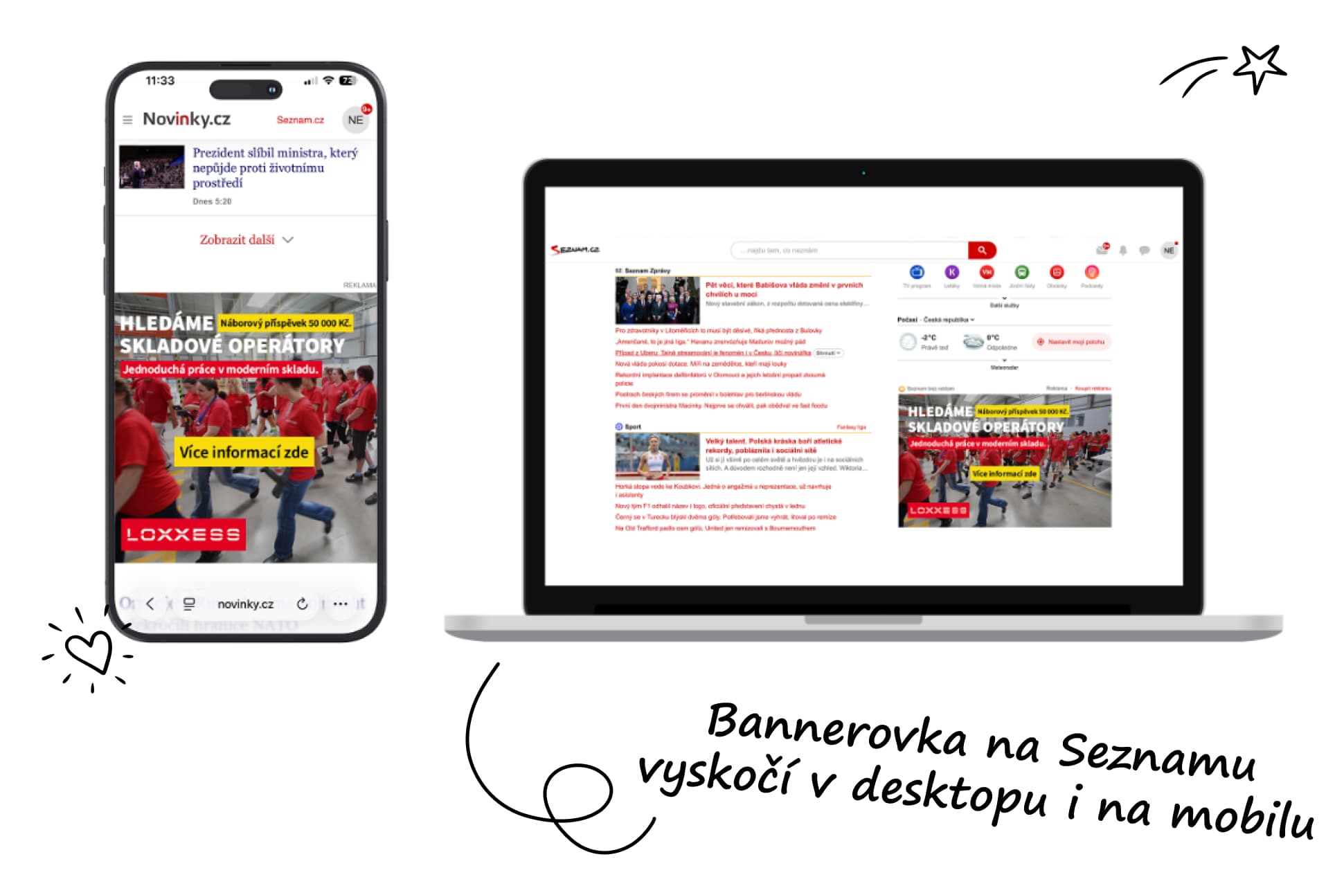 Branding reklama, kterou máme aktuálně v nabídce, je skvělý nástroj, jak se zviditelnit, nicméně se zobrazuje jen na PC. Proto nyní Nelisa nabízí také bannerovou reklamu, která se zobrazí jak v počítači, tak na mobilních zařízeních. Jedná se o vizuální formu reklamy s orientací na výkon a posílení značky.