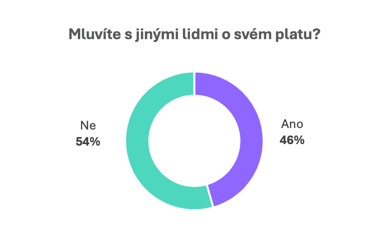 Bez ohledu na věk i pohlaví platí, že Češi mluví o platu především s těmi nejbližšími. Až 83 % uvedlo, že sdílí informace o mzdě s rodinou nebo přáteli. Dalšími lidmi, s nimiž Češi diskutují o platu, jsou kolegové (41 %). Jen minimum lidí (11 %) mluví o příjmu veřejně nebo bez ohledu na vztah. Mezi nejčastější důvody, proč Češi nemluví o platu, patří pocit, že jde o osobní záležitost (45 %) a že výše mzdy nepatří do veřejné diskuse (29 %). Dalších 22 % respondentů uvedlo, že je jim debata o příjmu nepříjemná, a 8 % se za svůj příjem dokonce stydí. Mnoho lidí se ale zapojí do diskuse například ze zvědavosti ohledně platů druhých.