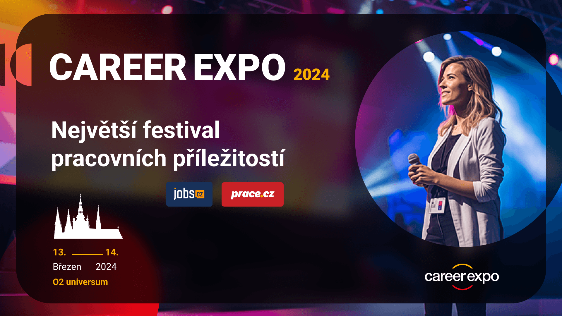 Career Expo bude velkou akcí, která proběhne od 13. do 14. března 2024 v pražském O2 universu (hned vedle O2 areny). Jde o moderní multifunkční prostor o 50 000 m² s 38 sály.