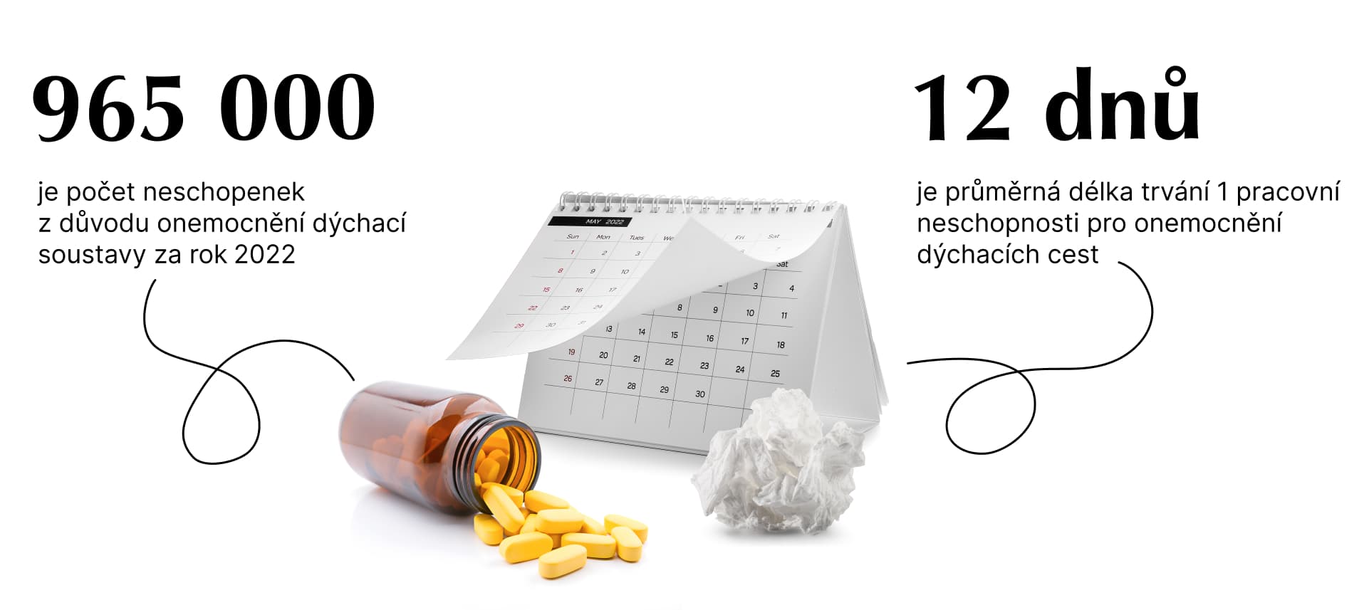 Nejčastějším důvodem pracovní neschopnosti v ČR jsou nemoci dýchací soustavy. Jde zejména o záněty horních a dolních cest dýchacích, akutní zánět mandlí či chřipku. Tyto respirační nemoci jsou příčinou více než třetiny z celkového objemu neschopenek v Česku. Podle aktuálních údajů České správy sociálního zabezpečení byla tato skupina onemocnění jen za první tři čtvrtletí roku 2023 důvodem pro 730 000 pracovních neschopností. Přitom jim lze z velké míry předcházet.