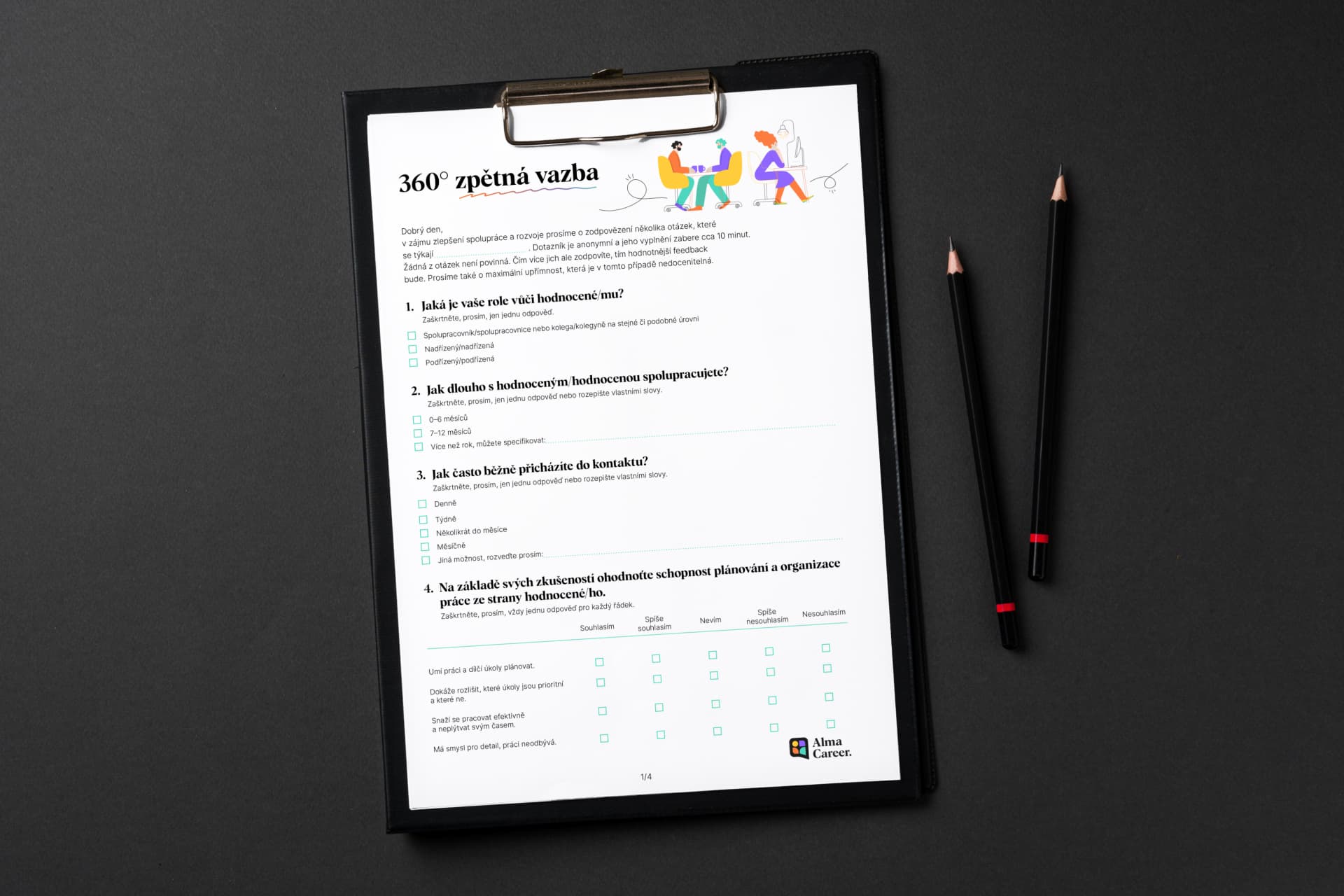 Pro inspiraci přikládáme ukázkový vzor zpětné vazby. Pokud byste ho chtěli v praxi použít, doporučujeme dotazník upravit tak, aby vyhovoval přímo potřebám vaší firmy a zároveň konkrétní pozici daného zaměstnance.