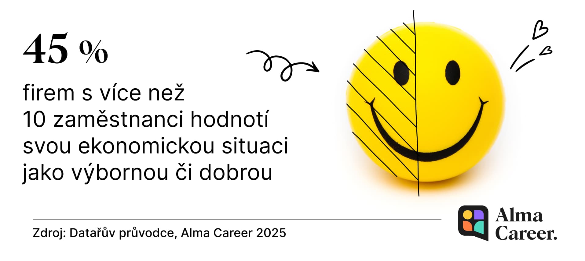 České firmy vidí svou budoucnost optimisticky. Podle průzkumu Datařův průvodce 2025 na přelomu roku vzrostl počet firem, které udávají zlepšení vlastní ekonomické situace – a plných 53 % očekává další zlepšení také v následujících letech.