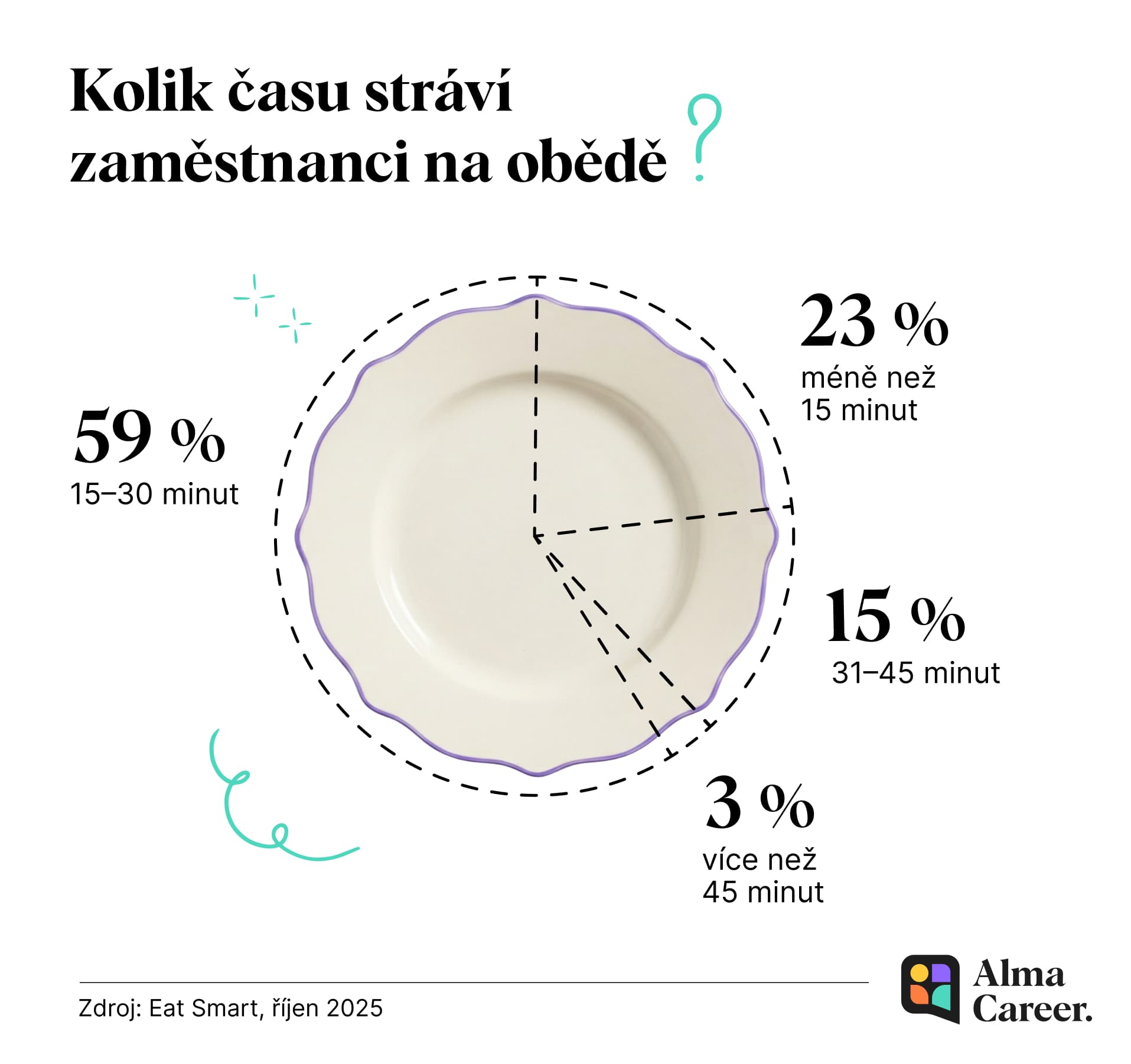 Podle výzkumu Eat Smart realizovaného nástrojem agentury Ipsos má osm z deseti zaměstnanců na oběd maximálně 30 minut. Pro řadu lidí je času jednoduše málo – a právě to často rozhoduje, jaký model stravování bude ve firmě fungovat.