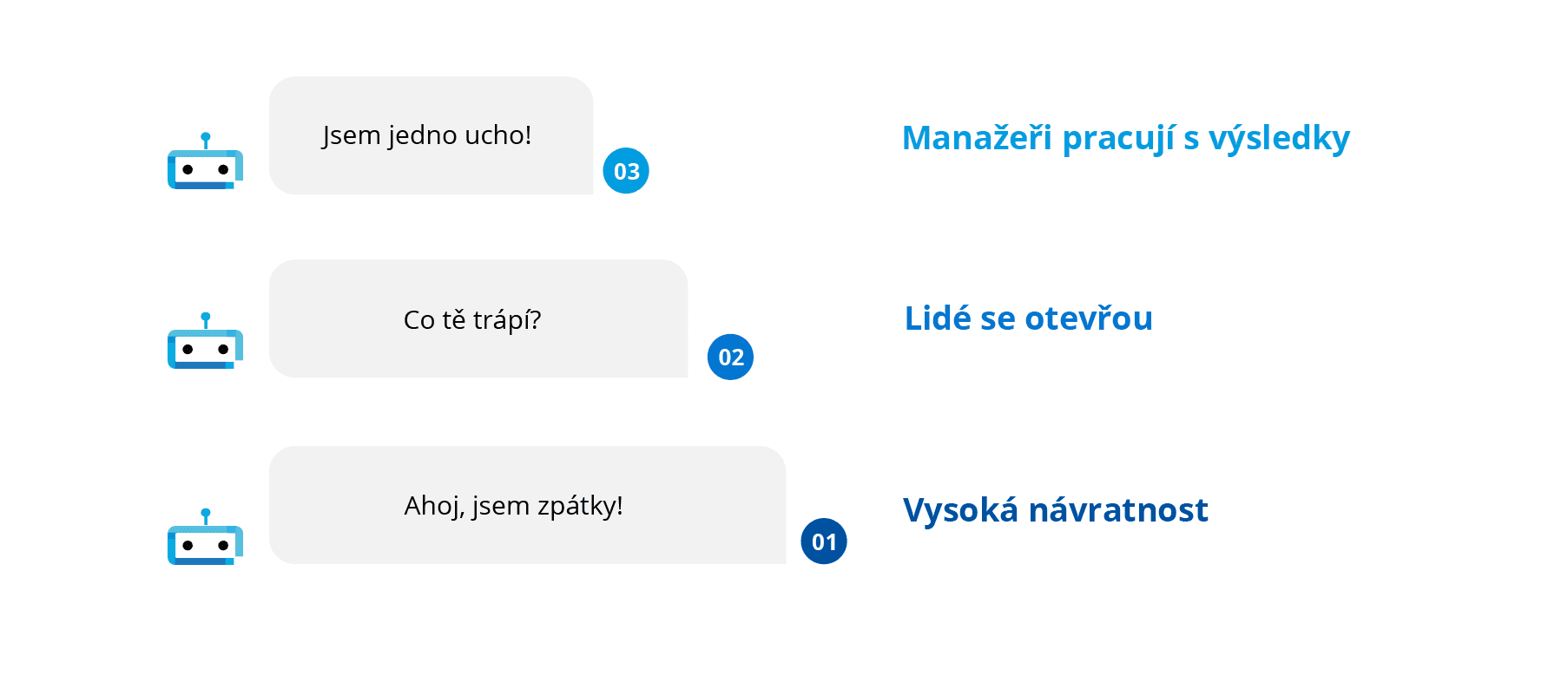 Jde vlastně o menší průzkumy, které se dělají pravidelně a vždy se věnují konkrétnímu tématu. Obvykle jsou rychlé a zaměstnance nijak nezatěžují vyplňováním. Dobře se s nimi pracuje v týmech, ale i vedení. Dá se na nich také snadno zkoumat, jak se atmosféra mění v čase. Přímo na pulzní průzkumy je určený náš chatovací robot Arnold, který sbírá zpětnou vazbu od zaměstnanců přívětivou formou.