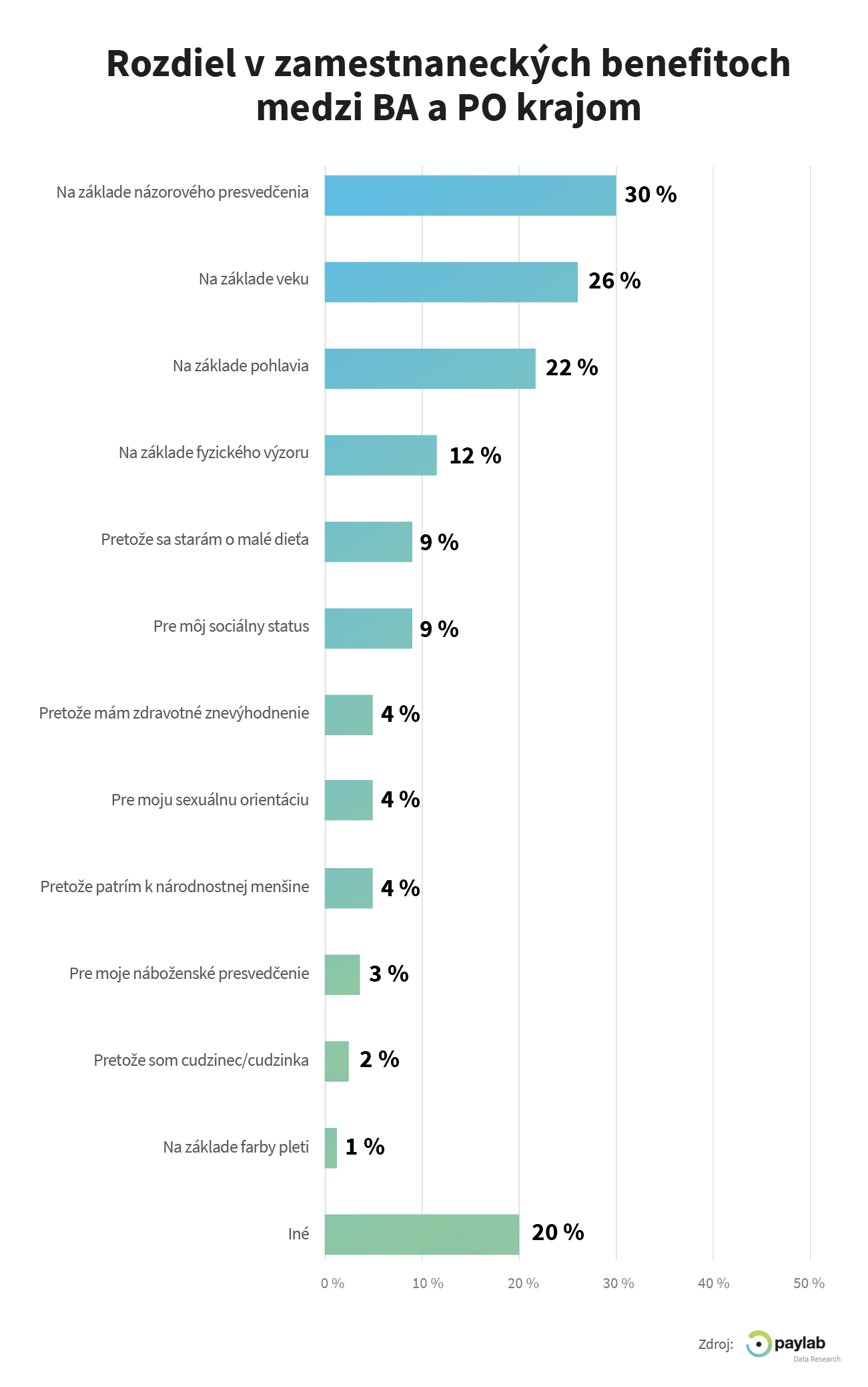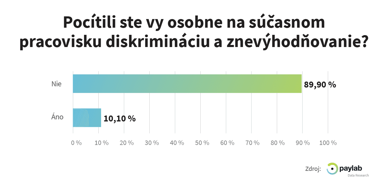 Výsledky prieskumu Paylab Data Research tiež poukázali na výskyt diskriminácie na pracovisku. Desatina respondentov priznala, že sa na pracovisku stretla so znevýhodňovaním.