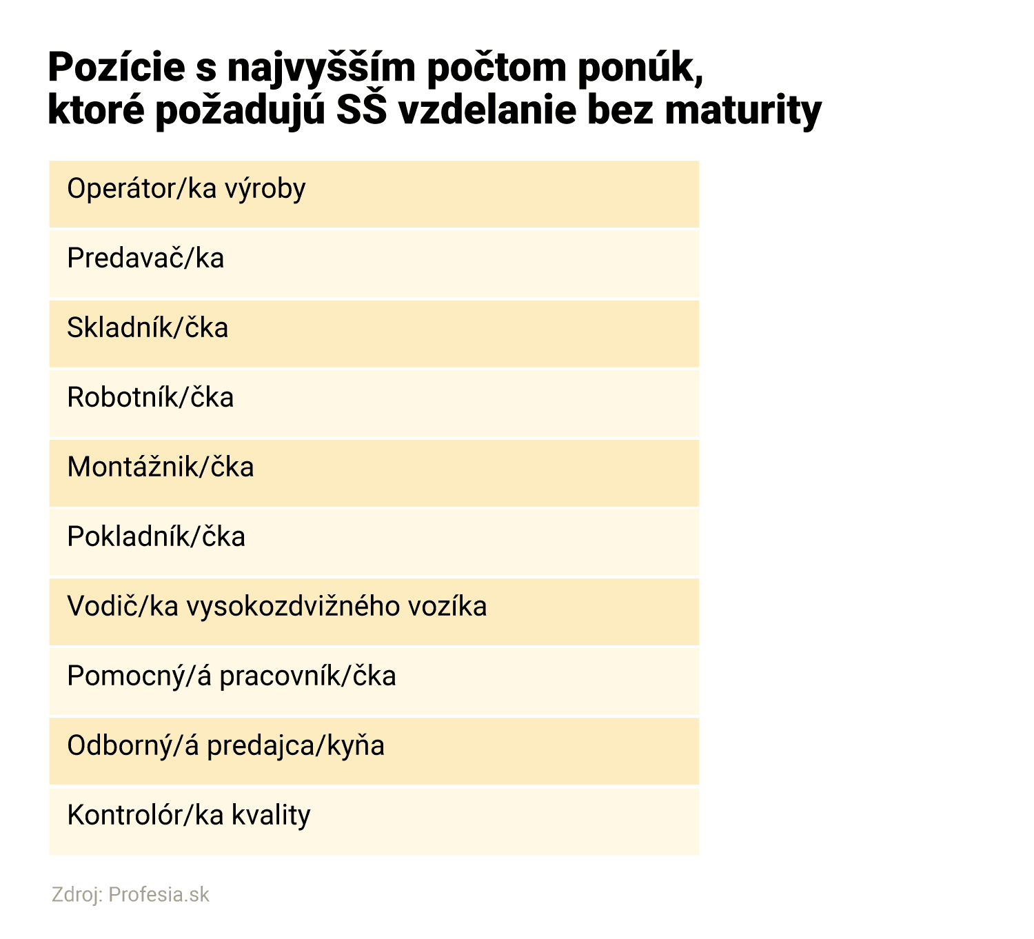 Najviac ponúk eviduje pracovný portál Profesia.sk na operátorov a operátorky výroby, predavačov či predavačky a skladníkov a skladníčky.