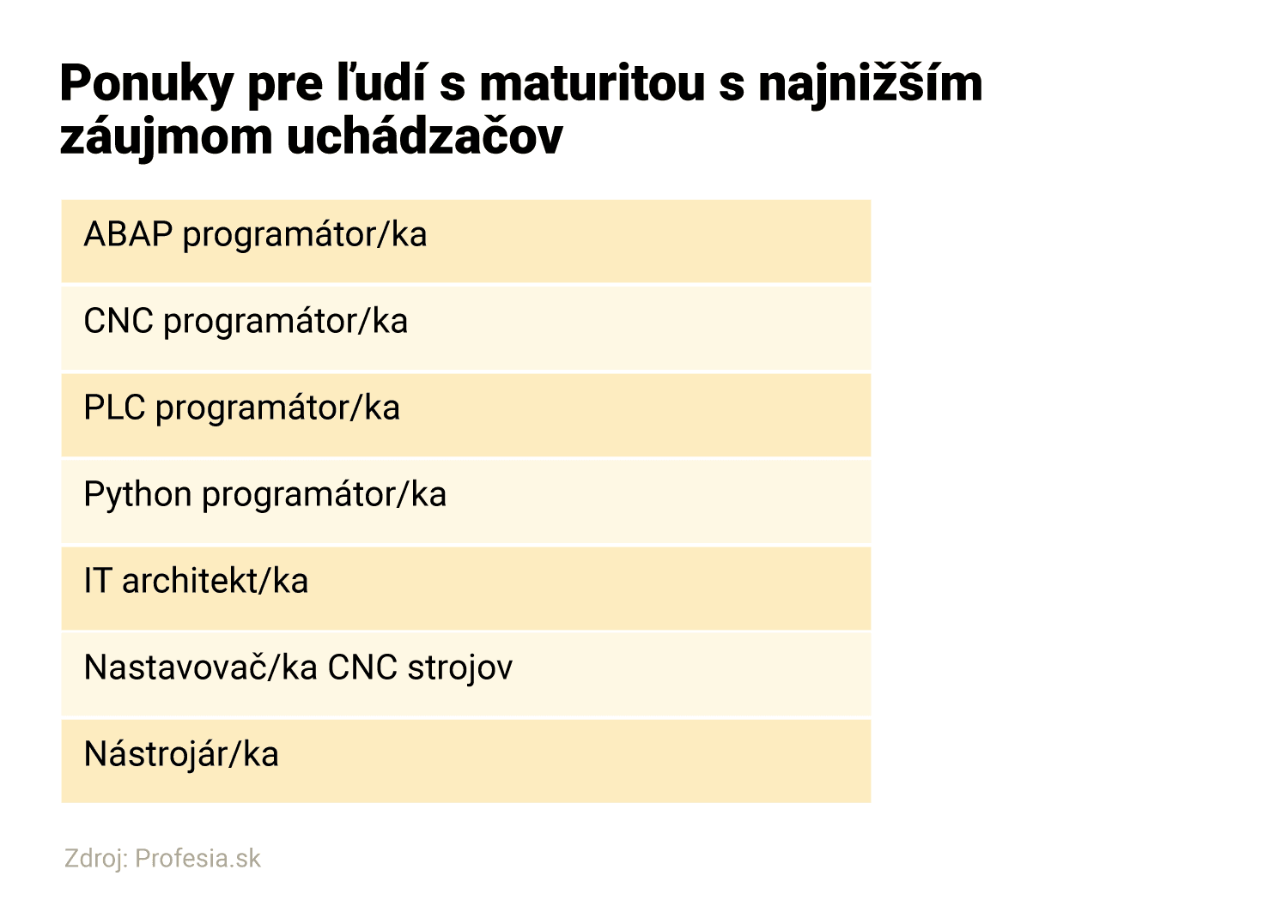 Oproti takej administratíve sú pre uchádzačov s maturitou omnoho dostupnejšie pracovné príležitosti v strojárstve, elektrotechnike či v informačných technológiách.