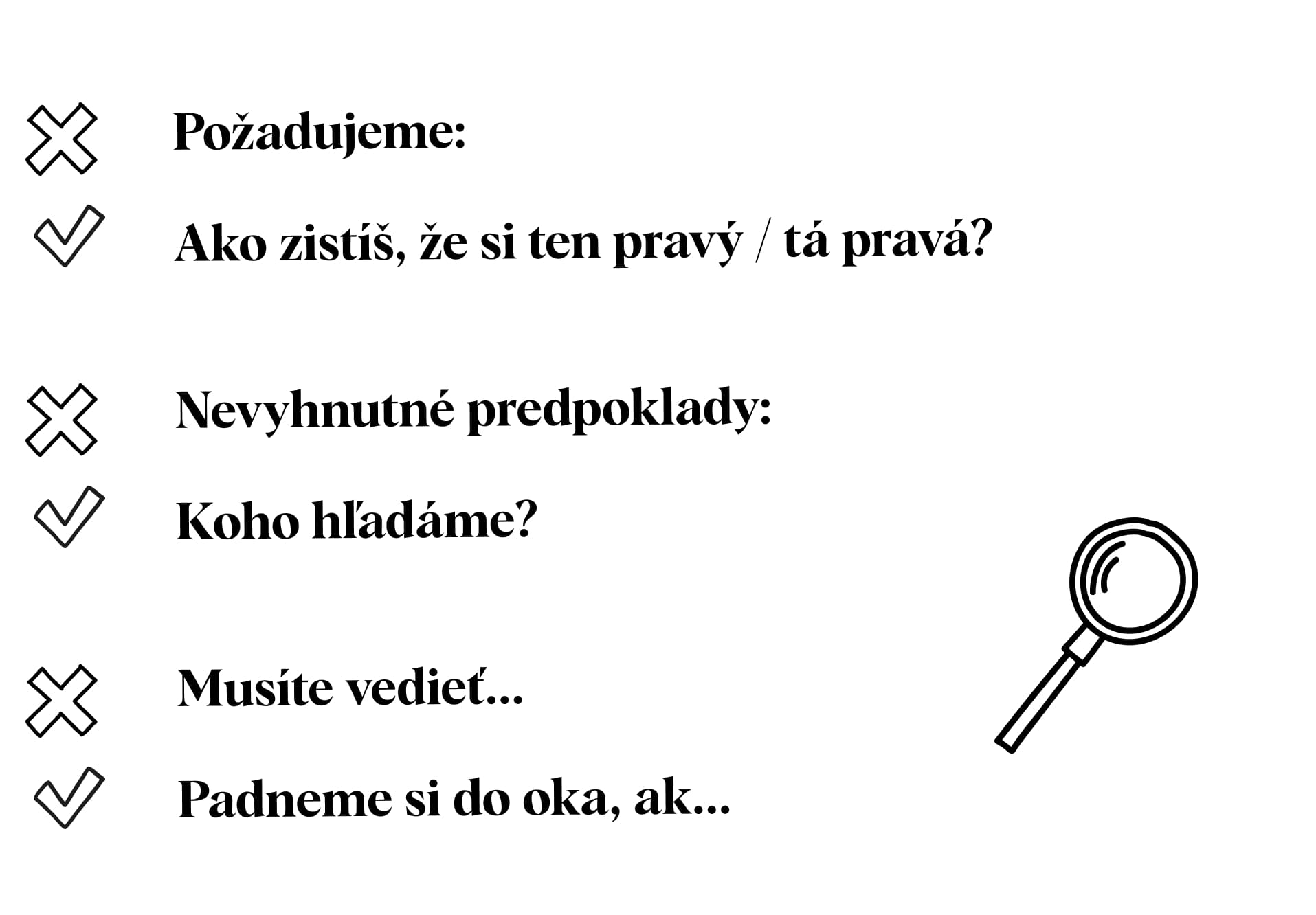 Dôležitý nie je len obsah, ale aj forma. Požiadavky písané ako rozkazy či ultimáta môžu vyvolať nepríjemné pocity aj v kandidátoch, ktorí ich napĺňajú. Každý radšej komunikuje s priateľskou firmou ako s drábom. Venujte preto pozornosť nadpisu sekcie s požiadavkami a ich formulácii.