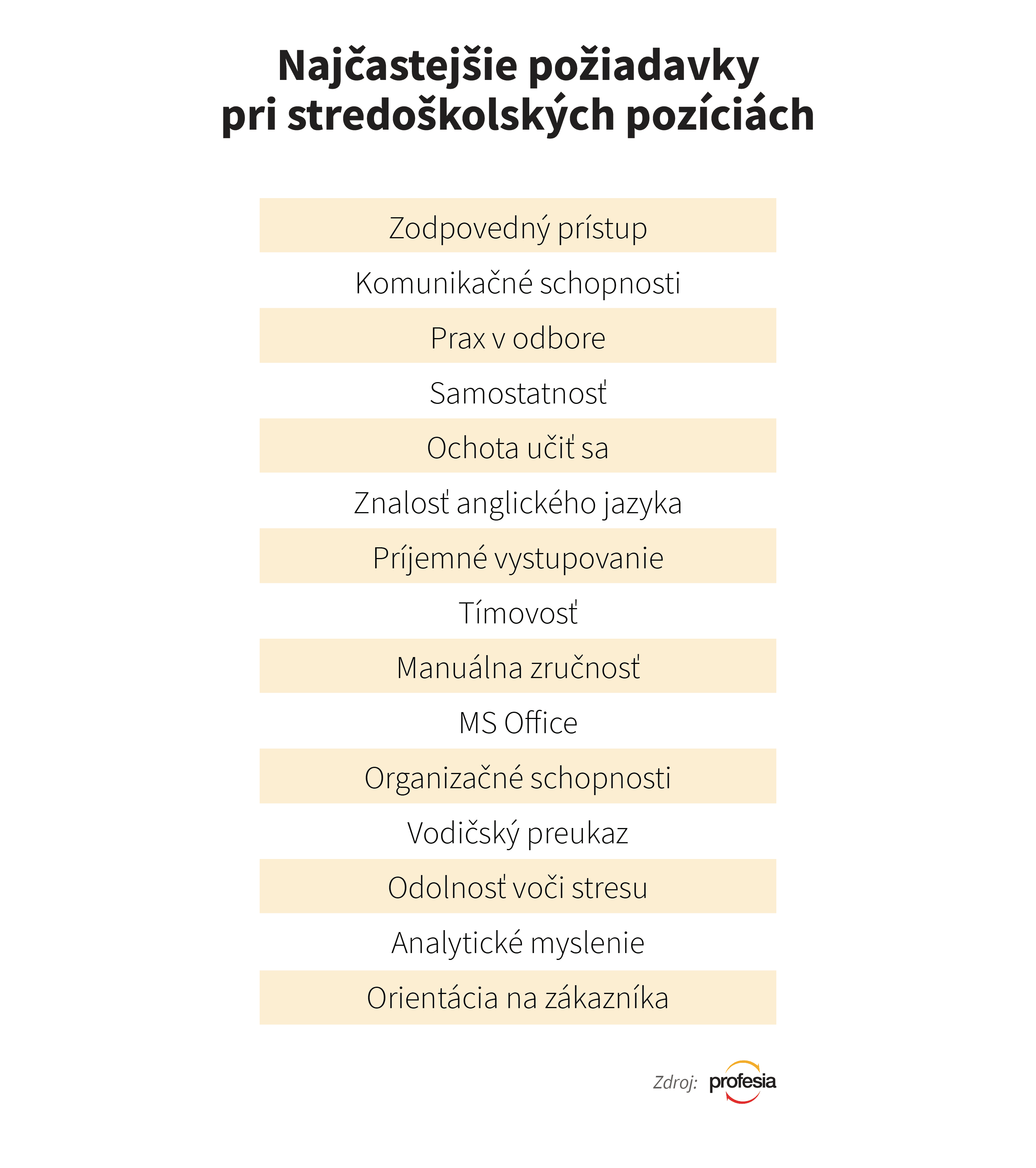 Medzi najčastejšími požiadavkami, ktoré v roku 2019 zadávajú firmy, čo hľadajú nových zamestnancov so stredoškolským vzdelaním, sú zodpovedný prístup, komunikačné schopnosti, prax, či samostatnosť.