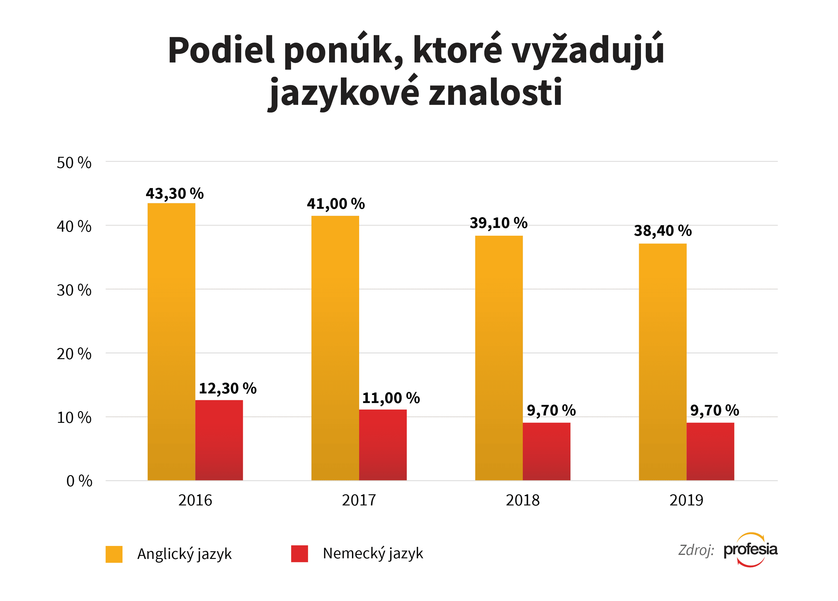 V roku 2016 vyžadovalo znalosť anglického jazyka viac ako 43 percent ponúk. V tomto roku podiel klesol na niečo vyše 38 percent.