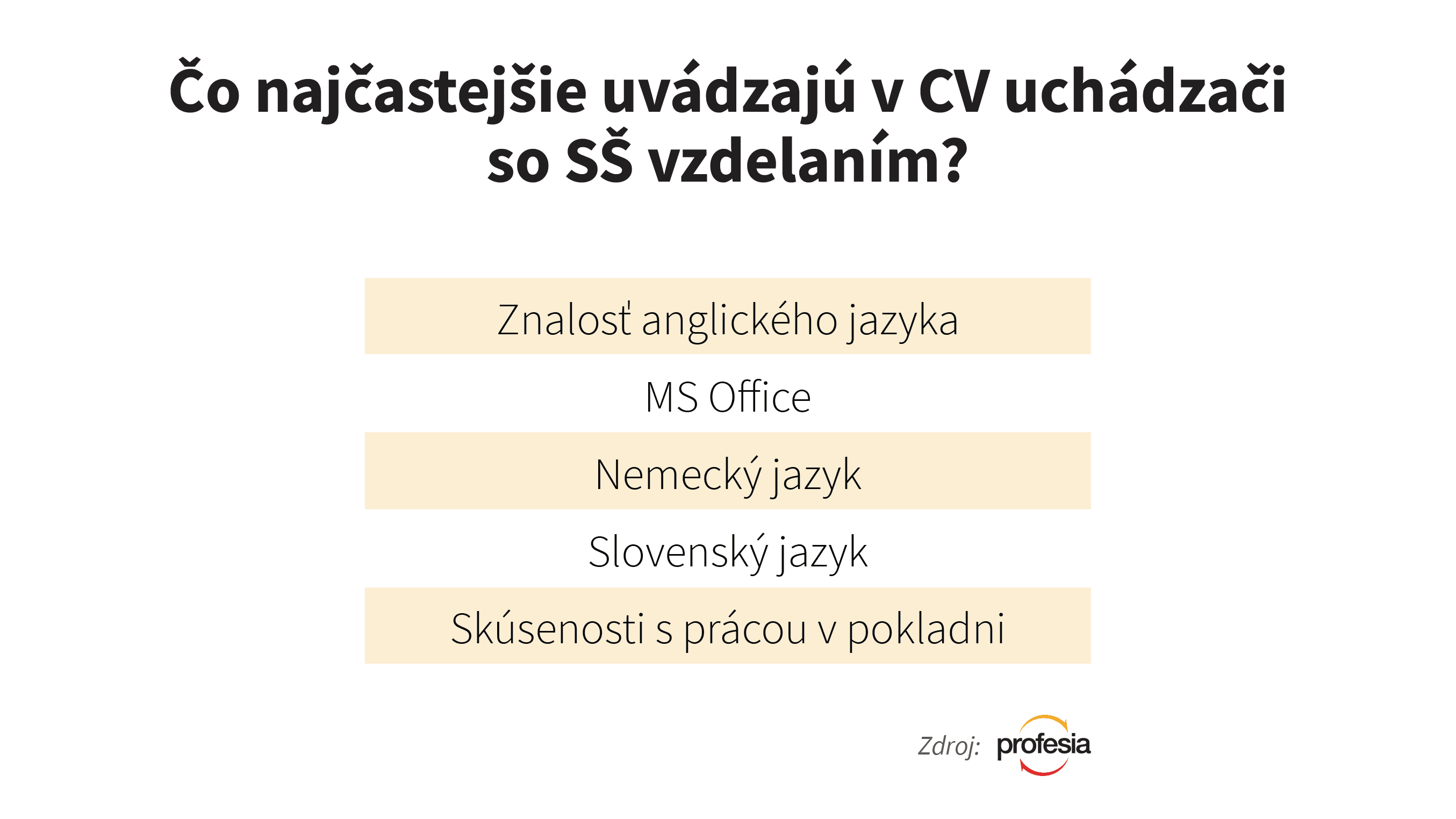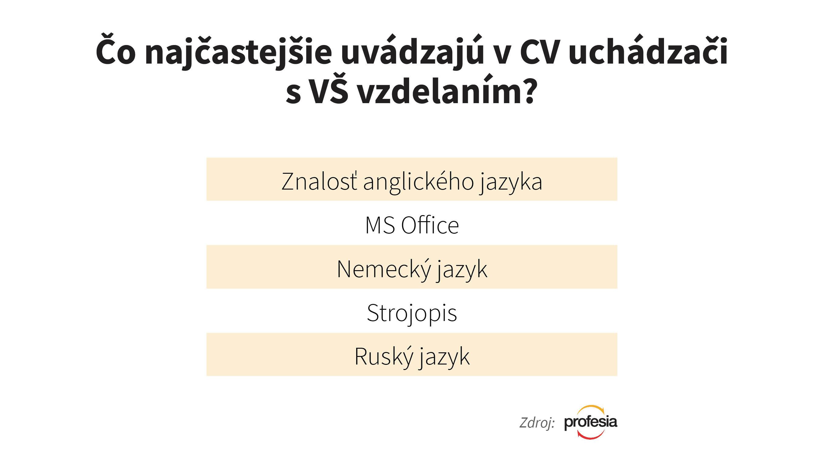 Najčastejšia požiadavka zamestnávateľoch pri pozíciách, ktoré vyžadujú vysokú školu, je znalosť anglického jazyka. Kým pri týchto pozíciách je ovládanie angličtiny takmer nevyhnutnosťou, pri stredoškolských pozíciách skončila táto znalosť až na piatom mieste.