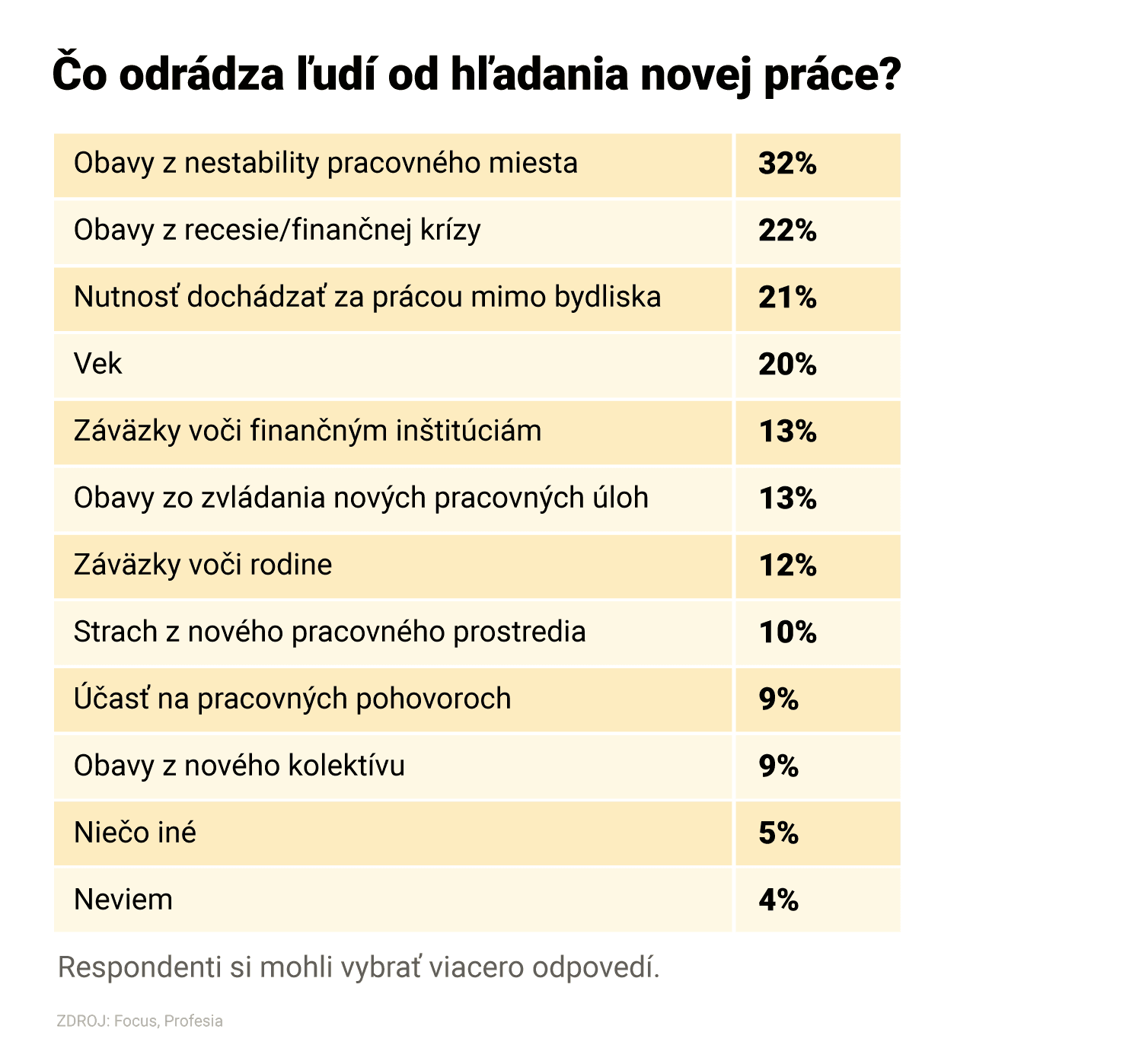Obavy z nestability pracovného miesta. Toto je najčastejšia vec, ktorá straší Slovákov pri pomyslení nad zmenou zamestnania. Odpoveď označila až tretina respondentov.