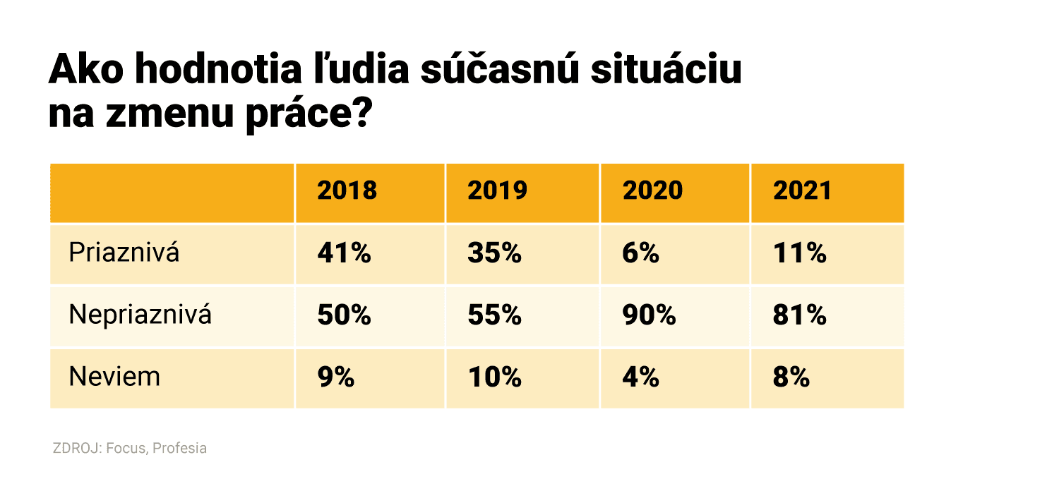Zaujímavosťou je, že iba 11 percent respondentov si myslí, že je priaznivý čas na zmenu svojho pracovného pôsobenia. Oproti nim je až 81 percent Slovákov, ktorí vidia situáciu presne naopak.