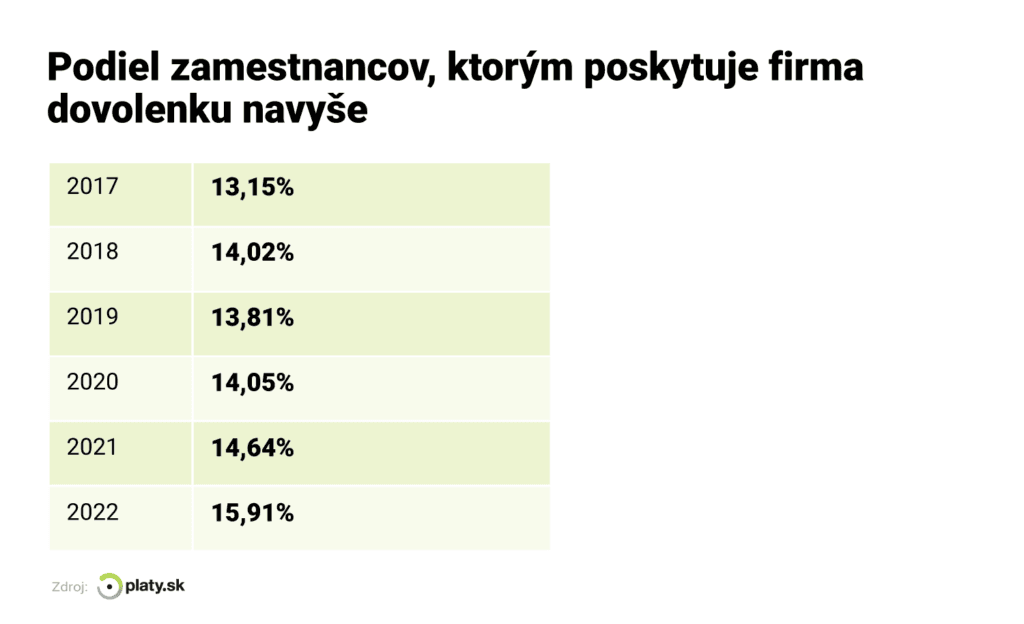 K výraznejšiemu nárastu v rozšírenosti tohto benefitu došlo najmä v posledných dvoch rokoch. Oproti roku 2020 dnes má extra dovolenku o zhruba dve percentá viac Slovákov.