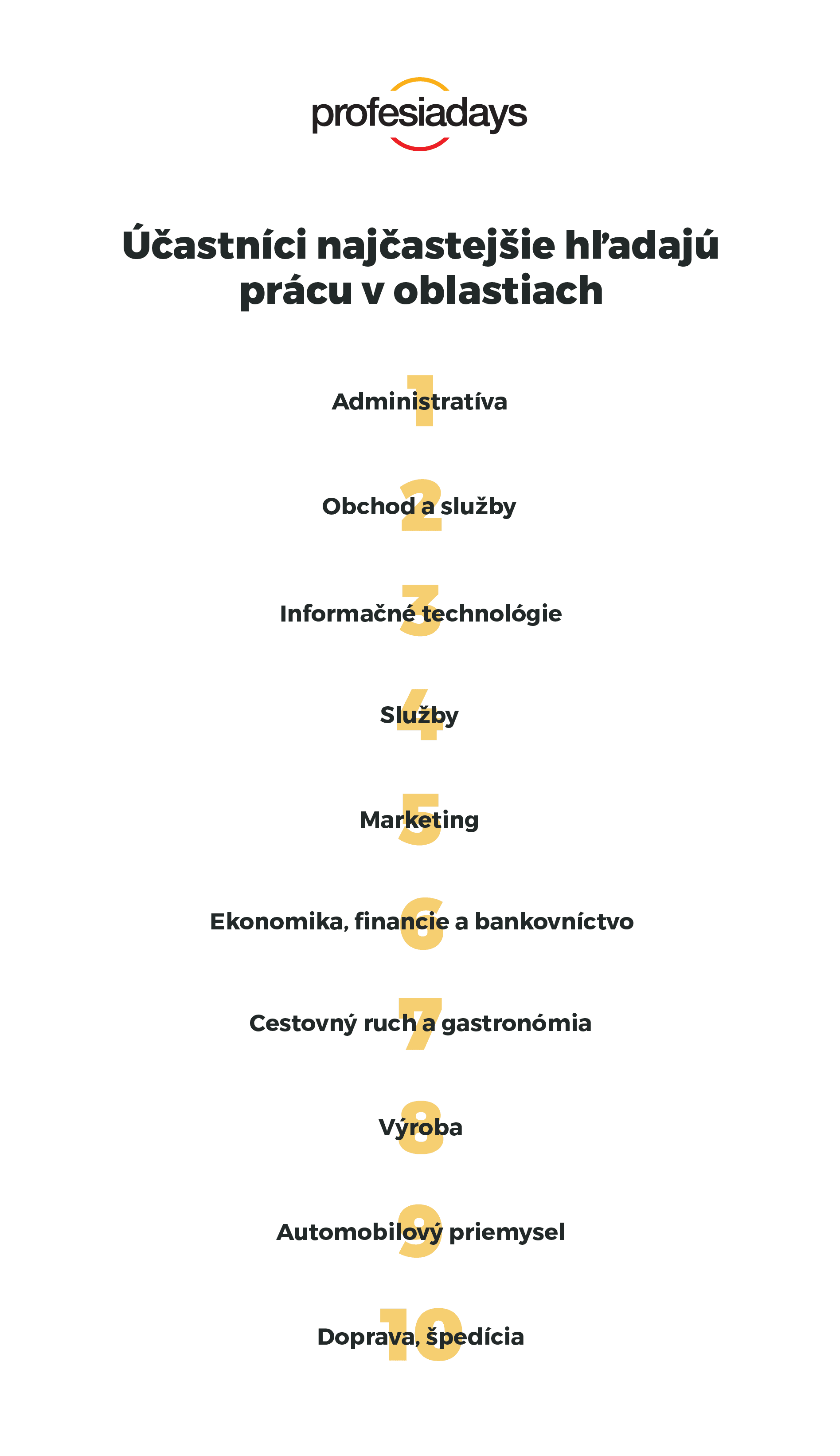 Štatistiky z podujatia potvrdzujú, že nejde iba o obyčajný veľtrh práce, ktorý je vhodný výlučne pre ľudí bez zamestnania. Medzi návštevníkmi bolo totiž 34 percent zamestnaných a 26 percent študentov. Až za týmito dvoma skupinami nasledovali ľudia, ktorí sú aktuálne bez práce či živnostníci.