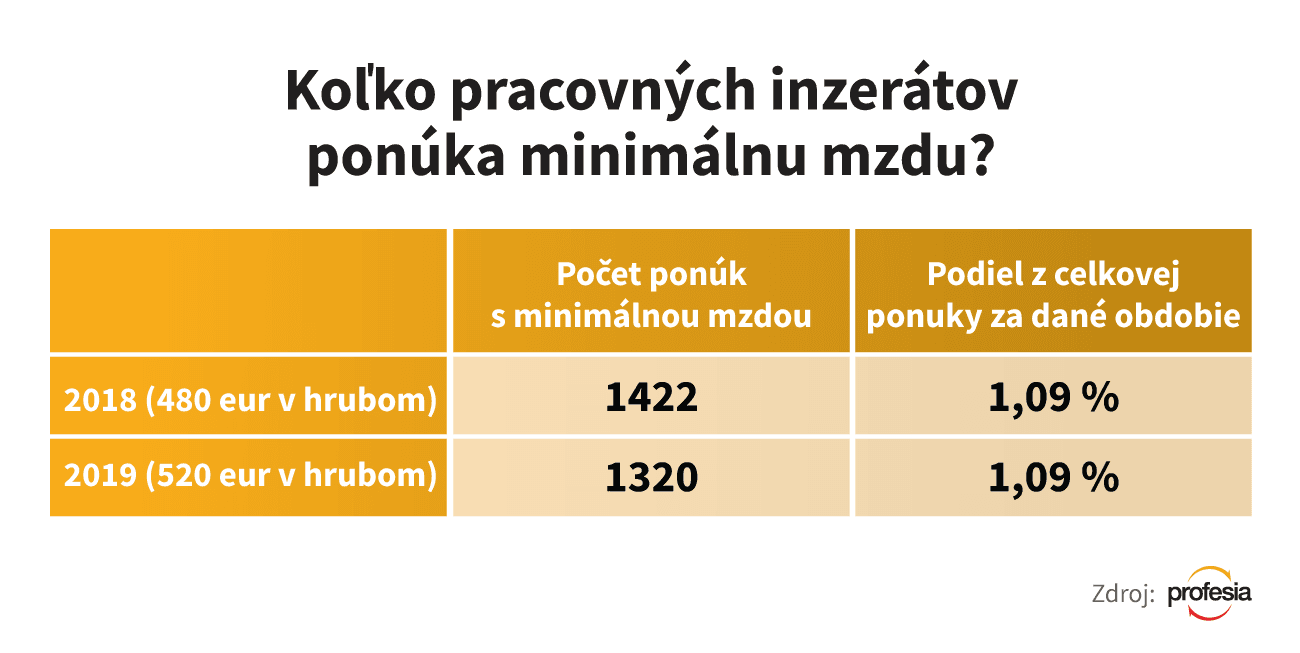 Jedno percento. Len toľko inzerátov z celkovej ponuky na pracovnom portáli Profesia.sk uviedlo v roku 2019 minimálnu mzdu.