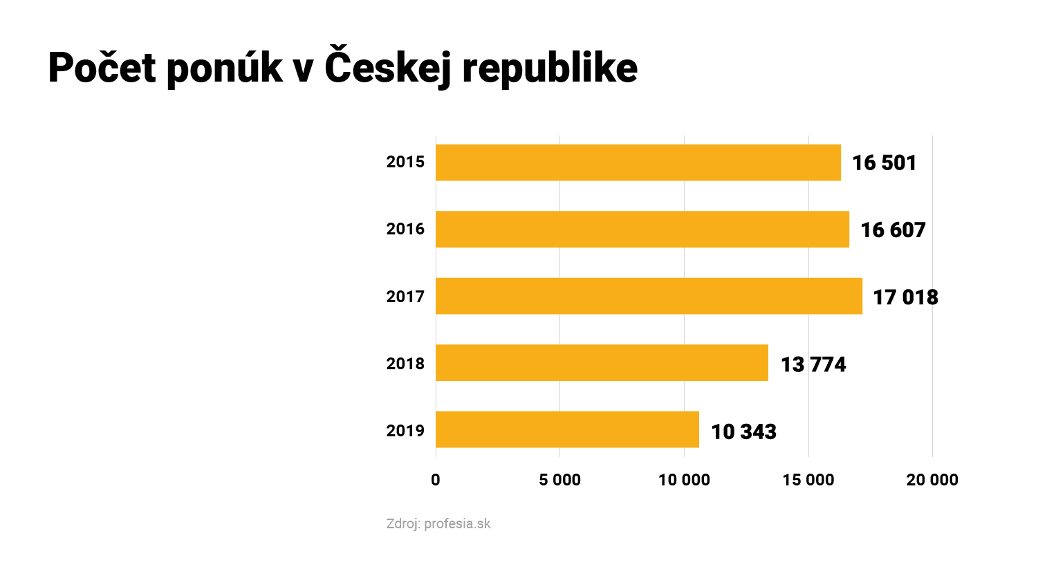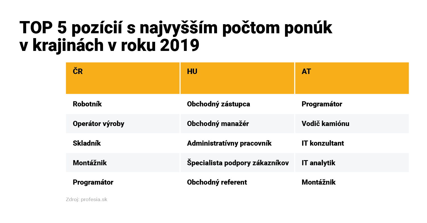 V roku 2019 tak hľadali firmy prostredníctvom Profesia.sk nových zamestnancov do Českej republiky vo viac ako 10-tisíc inzerátoch. V roku 2018 bolo ponúk o zhruba 3 500 viac.