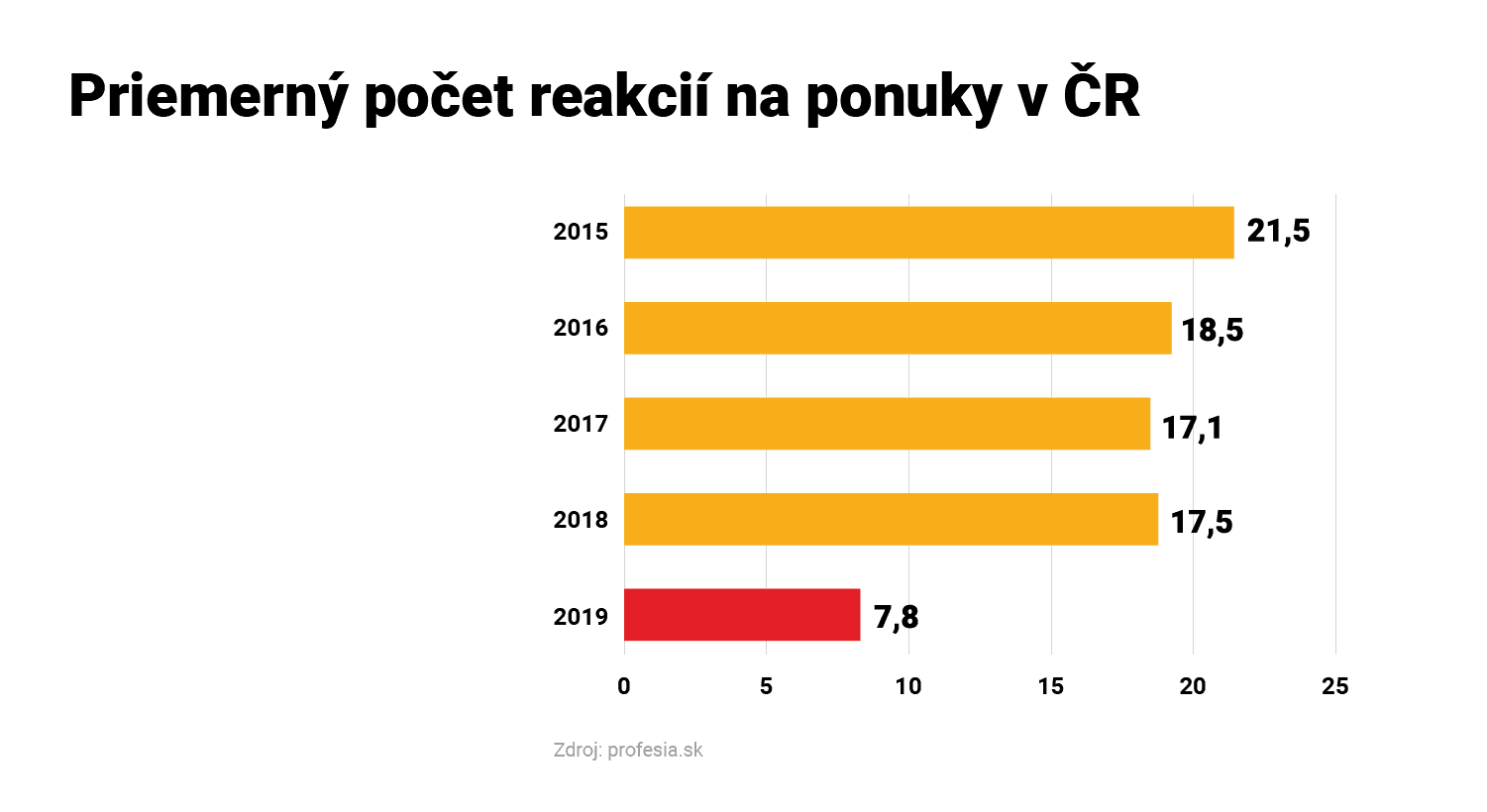 Priemerný počet reakcií sa medziročne znížil o takmer 10 uchádzačov na ponuku. Ešte v roku 2018 zareagovalo na jeden inzerát v Česku takmer 18 ľudí.
