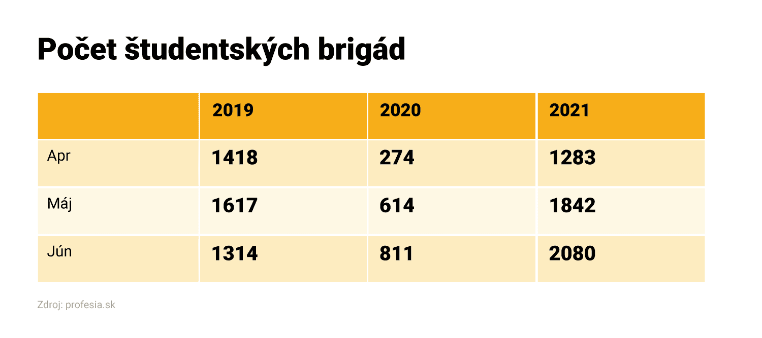 Aktuálne čísla sú pozitívne nielen v porovnaní s minulým rokom. Zamestnávatelia totiž prekonali aj dopyt po brigádnikoch z roka 2019. V júni 2019 zaznamenala Profesia o 766 ponúk menej.
