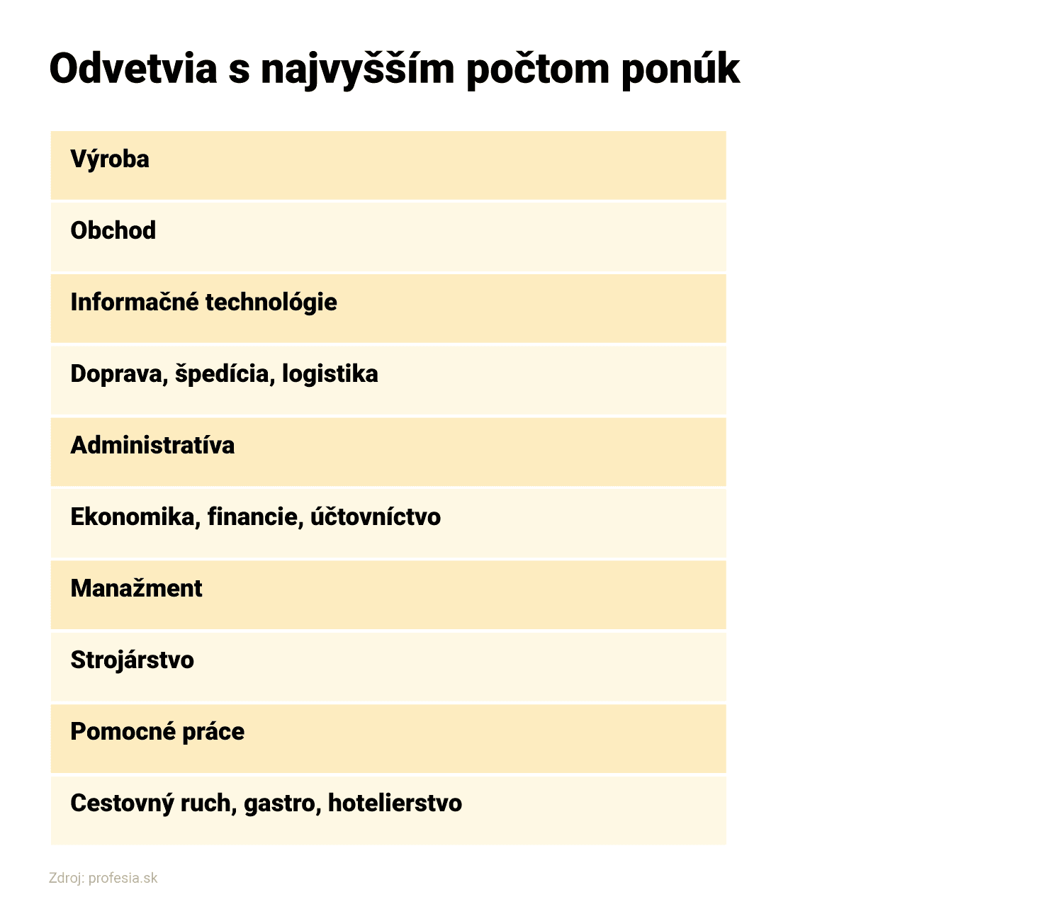Uchádzači na Slovensku majú aktuálne najviac možností nájsť si nové zamestnanie vo výrobe, obchode a v informačných technológiách.