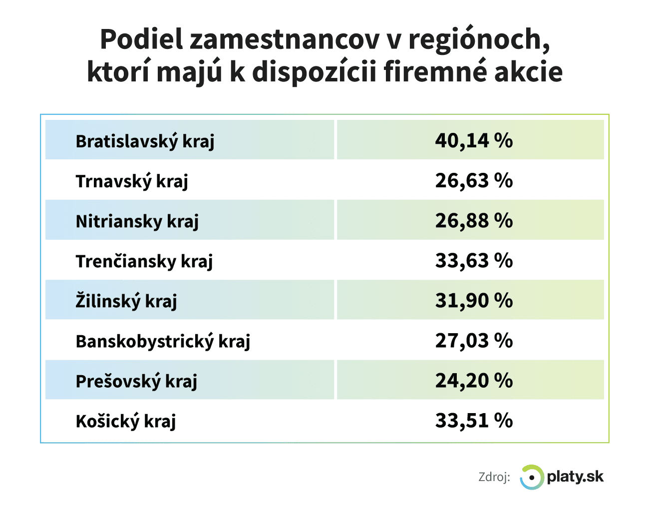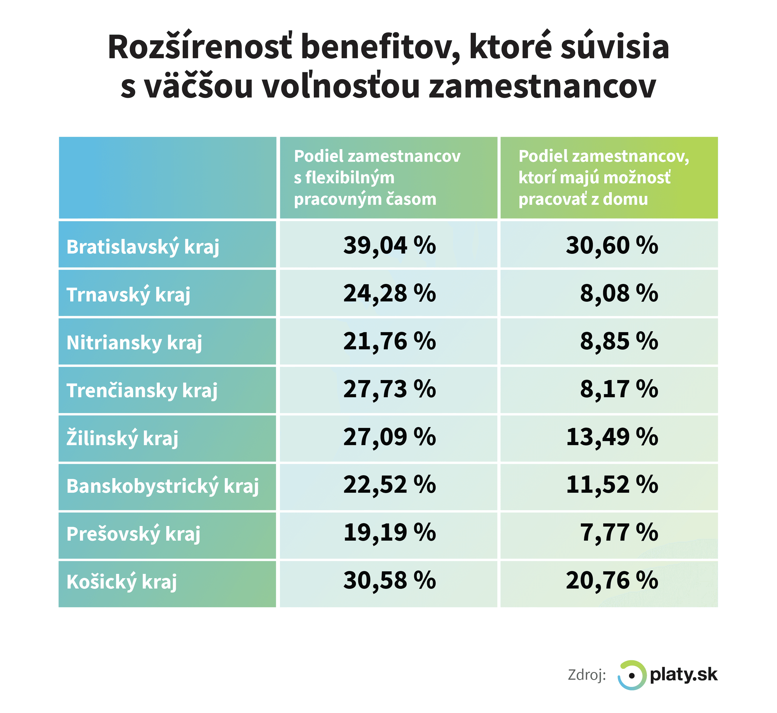 Na druhej strane rebríčka je opäť Prešovský kraj. V tomto regióne má tento benefit k dispozícii necelá štvrtina pracovníkov.