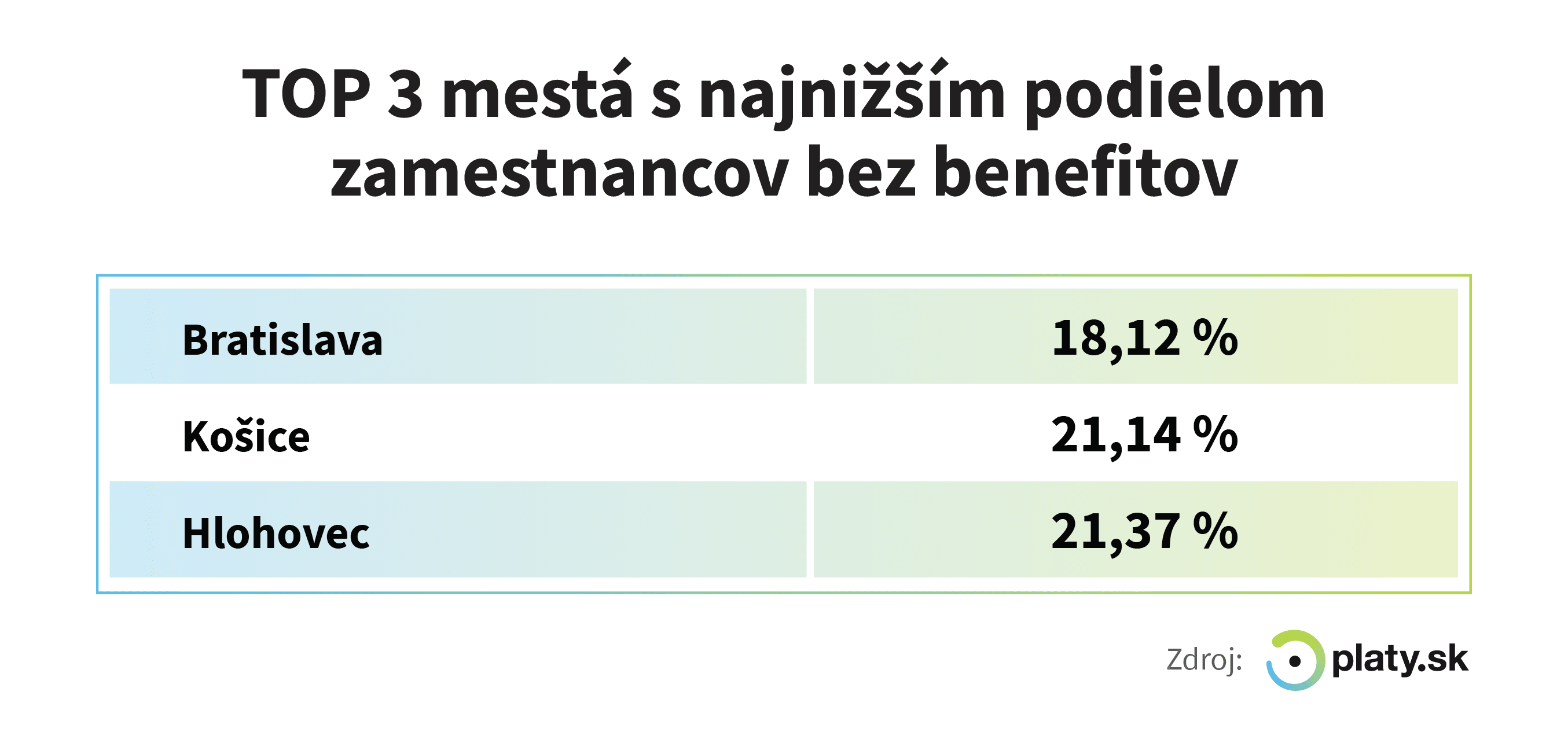 Rebríček konkrétnych miest ukazuje, že najatraktívnejšími miestami na prácu sú z pohľadu zamestnaneckých benefitov Bratislava a Košice.