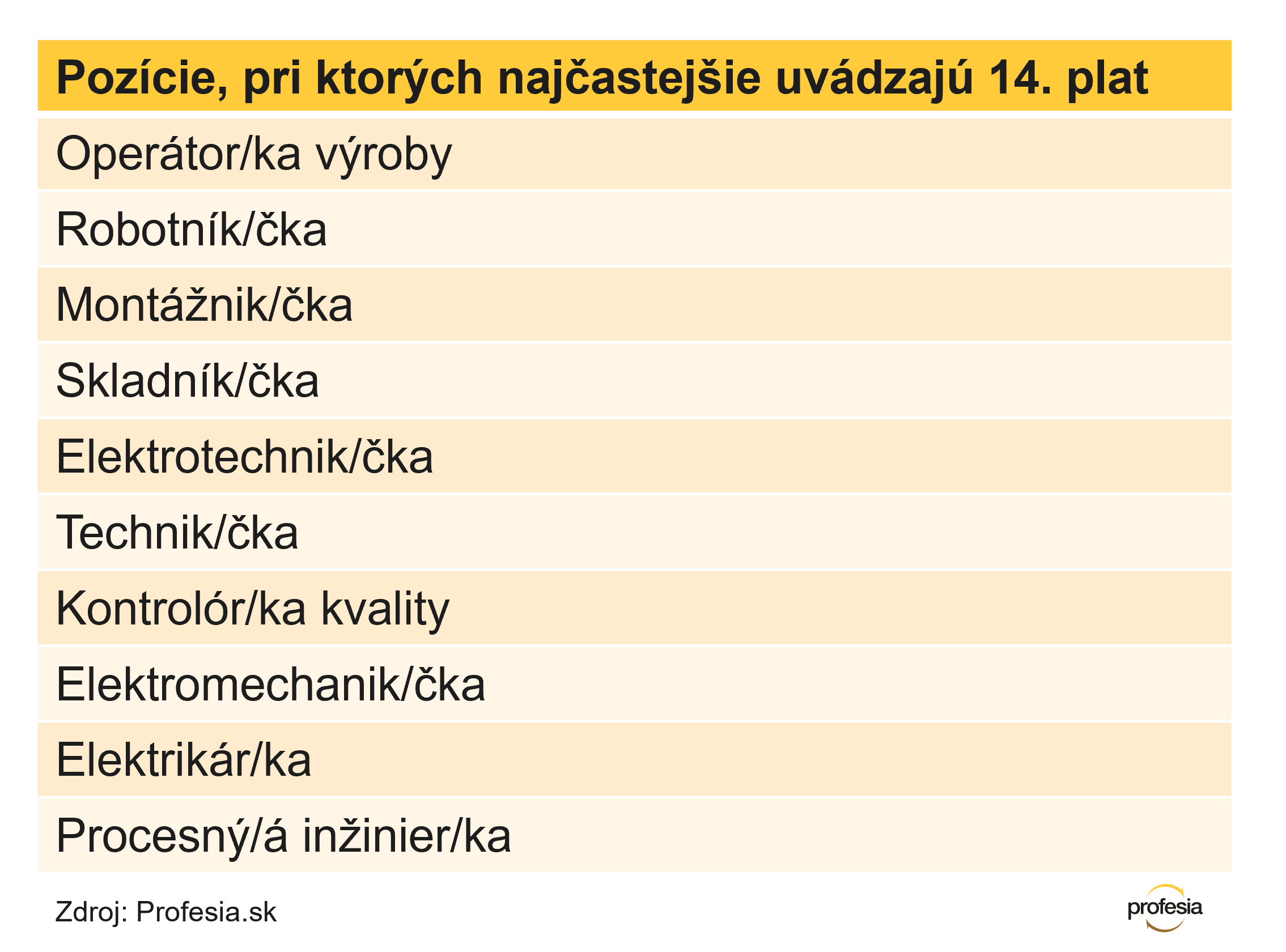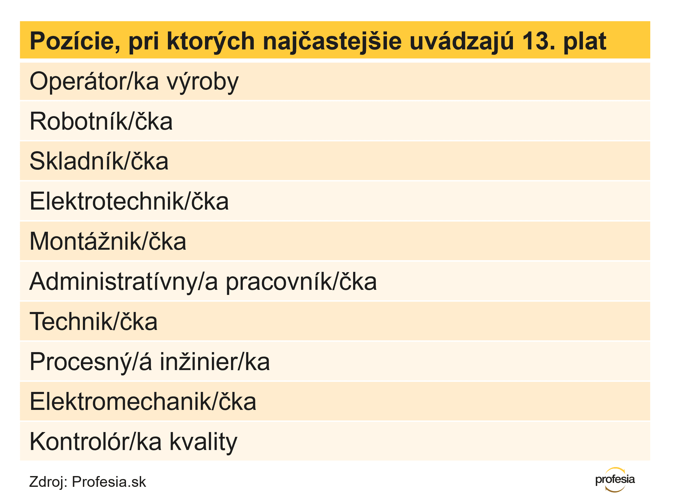 13. plat najčastejšie uvádzali firmy v ponukách na operátorov a operátorky výroby, robotníkov, skladníkov, elektrotechnikov a montážnikov.