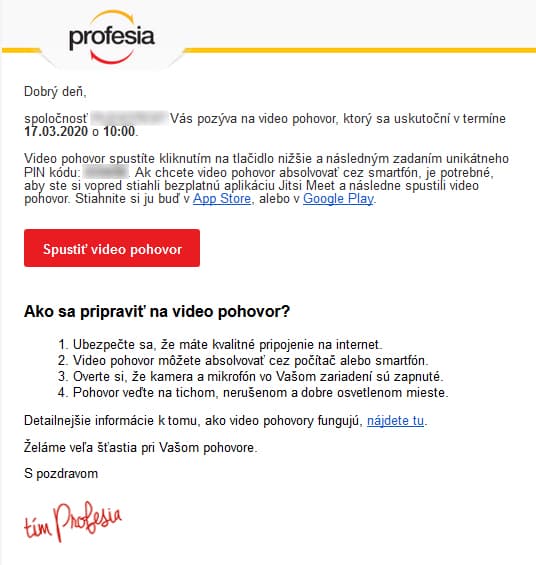 Udržať zdravý chod náborov na trhu práce aj po vyhlásení mimoriadnej situácie. Túto úlohu dostali zamestnanci najväčšieho pracovného portálu na Slovensku. Spoločnosť Profesia sa snaží obmedziť hromadné rušenie pracovných pohovorov využitým online možností. Firmám odporúča využiť video pohovory.