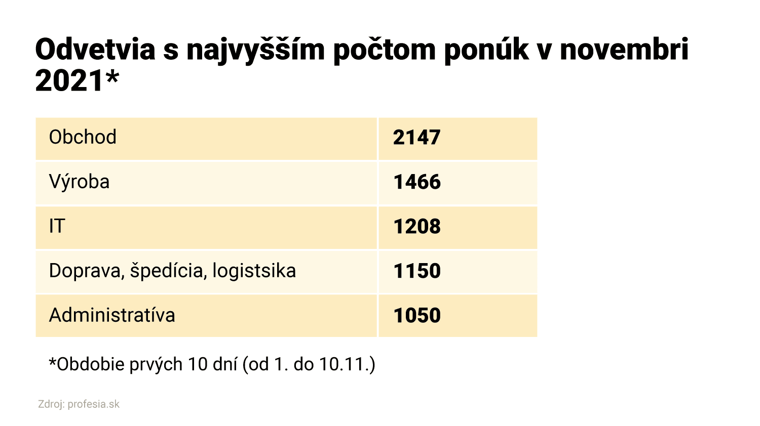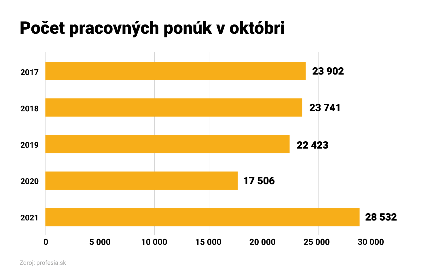 Október 2021 priniesol zatiaľ najviac ponúk za 24 rokov fungovania Profesie. Pre tento mesiac bol doteraz rekordný počet inzerátov z roka 2017. Firmy vtedy uverejnili 23 902 pracovných inzerátov.