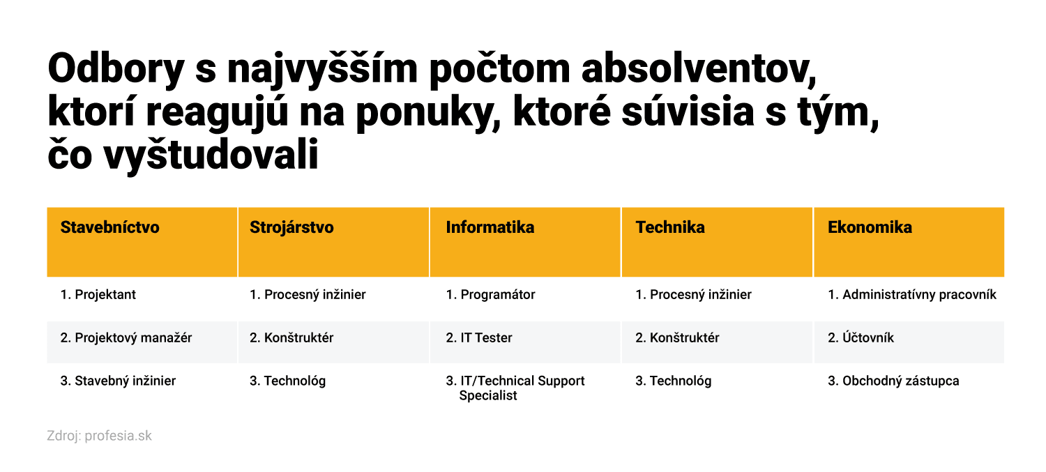Podľa Profesie ide najmä o absolventov stavebníctva, strojárstva, informatiky, techniky a ekonomiky.