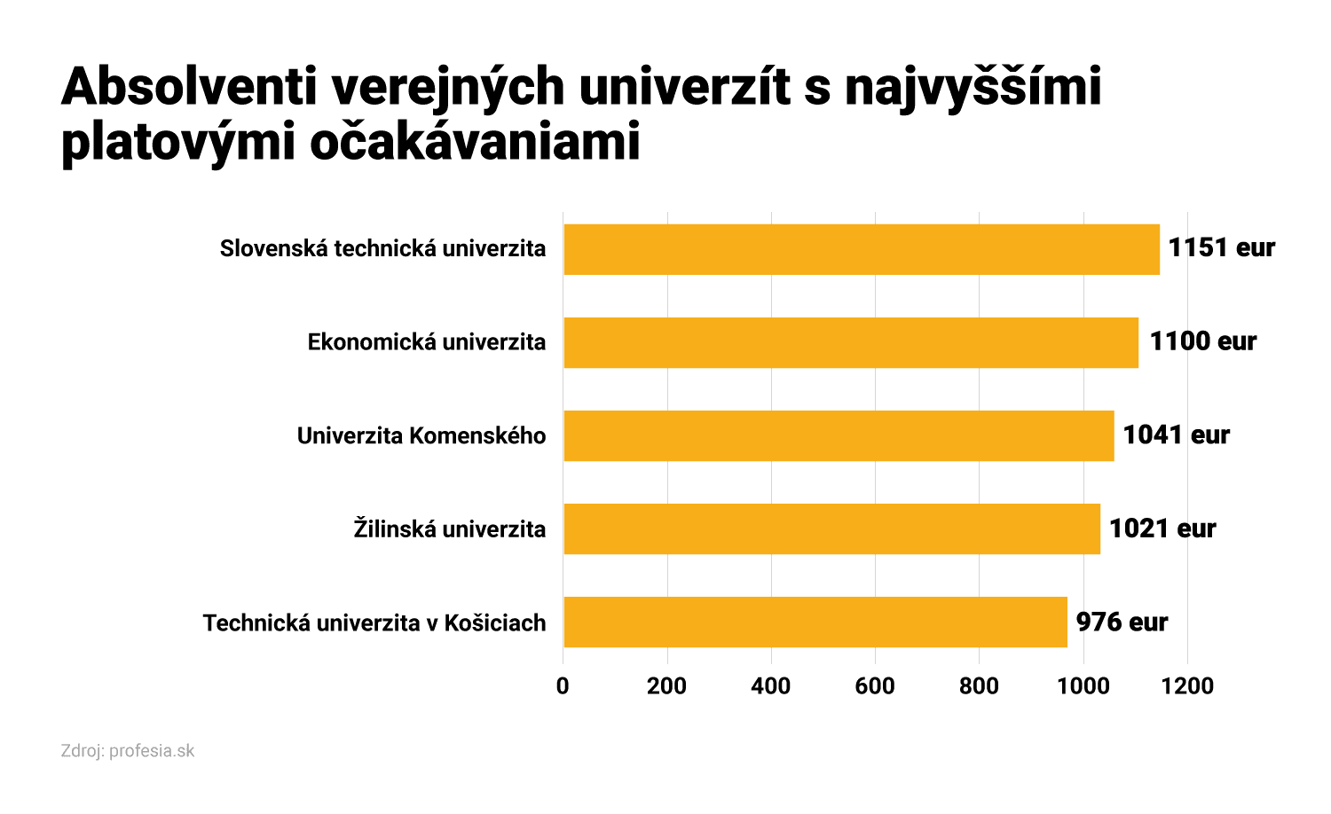 Absolventov s najvyššími mzdovými očakávaniami môžeme vidieť v Bratislave. Na prvých troch priečkach skončili podľa analýzy pracovného portálu Profesia.sk bratislavské školy Slovenská technická univerzita, Ekonomická univerzita a Univerzita Komenského.