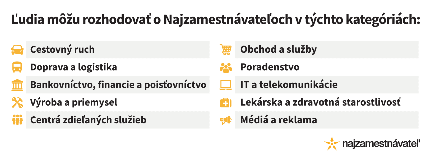 Anketa spoločnosti Profesia rozhoduje o Najatraktívnejších zamestnávateľoch z pohľadu ľudí. V roku 2019 ide už o ôsmy ročník, pričom ceny sa budú udeľovať podľa desiatich oblastí podnikania.