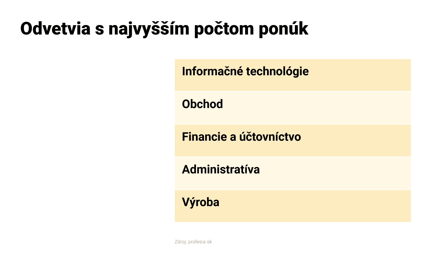 Bližší pohľad na aktuálnu ponuku odhaľuje, že uchádzači majú najviac príležitostí zamestnať sa na pozíciách v informačných technológiách, obchode či vo financiách a účtovníctve.