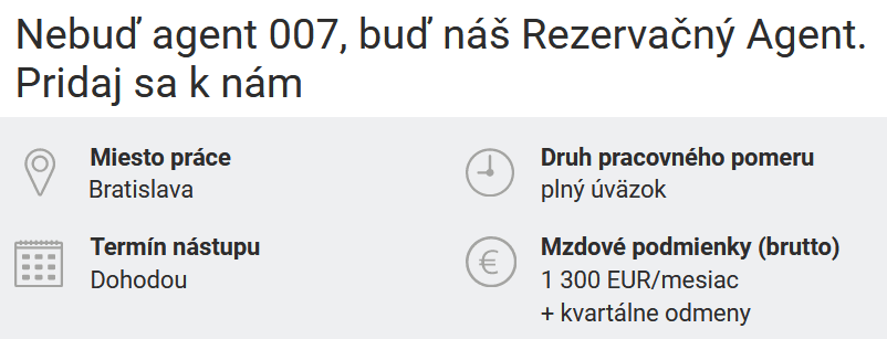 Naopak, agenta 007 nepotrebovali v hlavnom meste, zamestnávateľ z Bratislavy mal nižšie nároky a uprednostnil Rezervačného agenta.