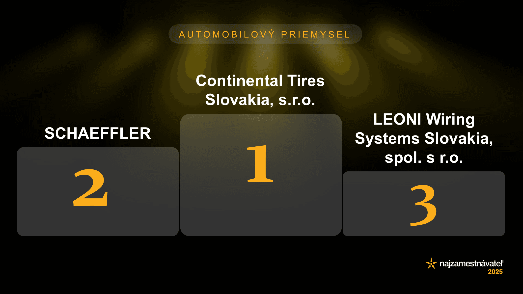 Z titulu „najatraktívnejší zamestnávateľ“ sa od stredajšieho galavečera v Starej tržnici môže okrem staronových víťazov tešiť aj 5 nováčikov. V kategórii Automobilový priemysel zvíťazil Continental Tires Slovakia, v bankovníctve a poisťovníctve je najatraktívnejšie Swiss Re, medzi centrami zdieľaných služieb ukončilo Lenovo Slovakia 4-ročnú sériu víťazstiev spoločnosti Henkel. Spomedzi zamestnávateľov pôsobiacich v zdravotníctve je najatraktívnejšou spoločnosťou Penta Hospitals a z premiérového víťazstva sa tešili aj zástupcovia Magistrátu hlavného mesta Bratislavy, ktorí sa stali najatraktívnejšími v štátnej a verejnej správe.