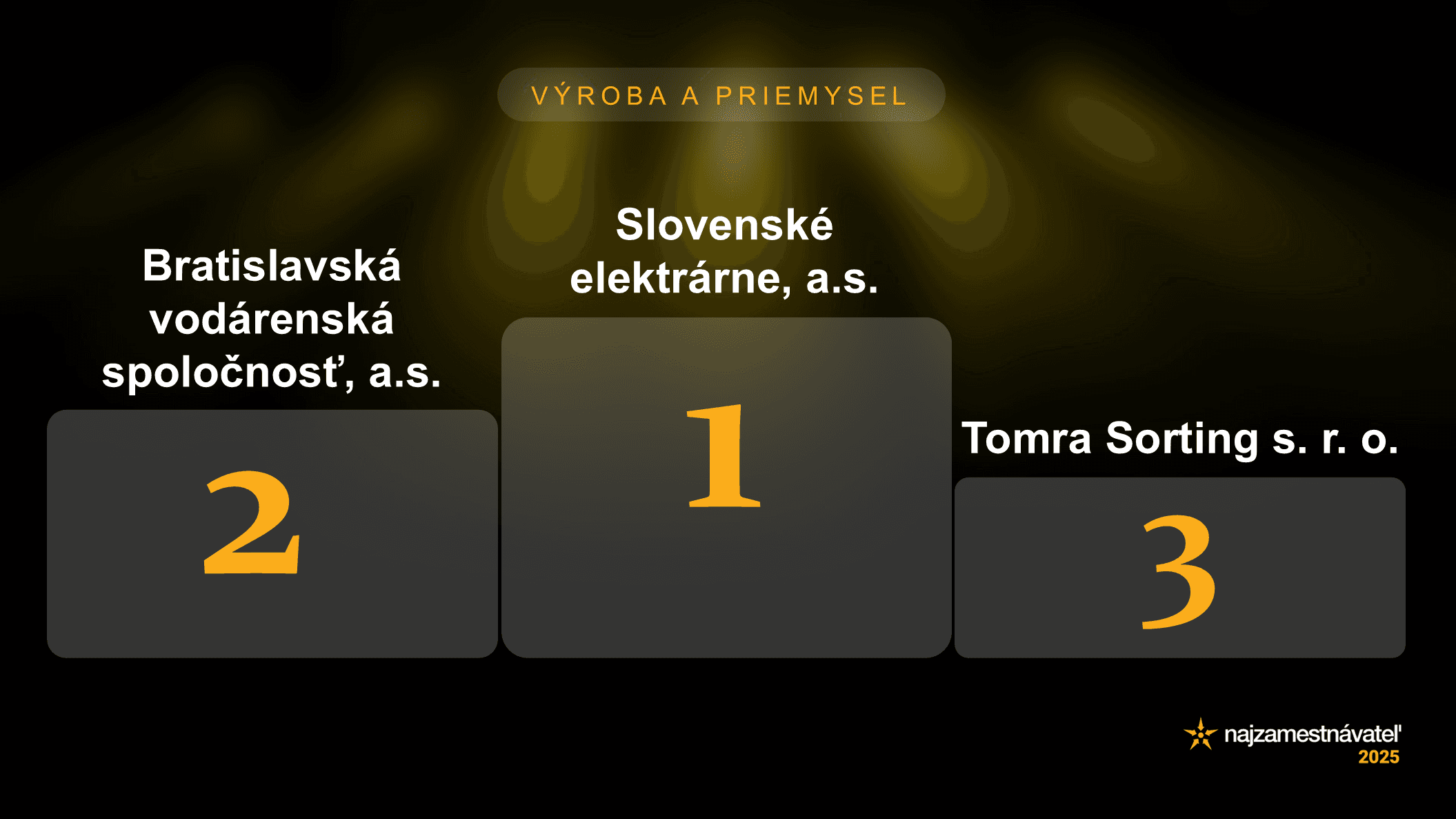 Staronovými Najzamestnávateľmi sú Medusa, Dopravný podnik Bratislava, Slovak Telekom, Tesco, Danucem a Slovenské elektrárne, ktoré sa stali najatraktívnejším zamestnávateľom v kategórii výroba a priemysel už šiesty raz po sebe.