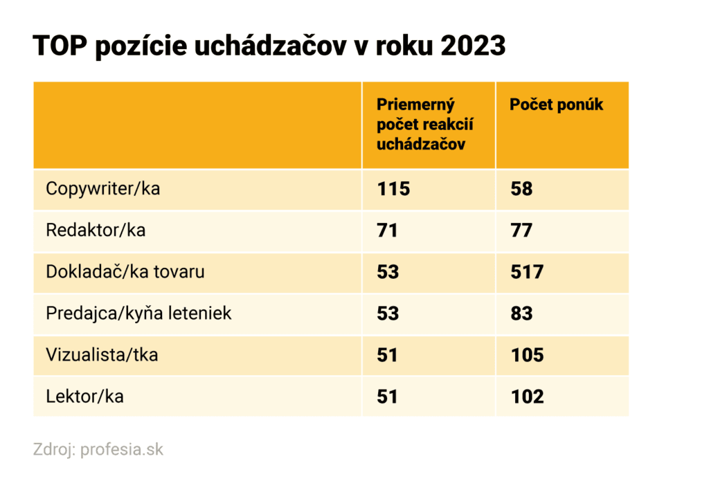 Po copywriterovi/ke mali u ľudí najväčší ohlas ponuky práce na redaktora/ku, dokladača/ky tovaru či predajcu/kyňu leteniek.