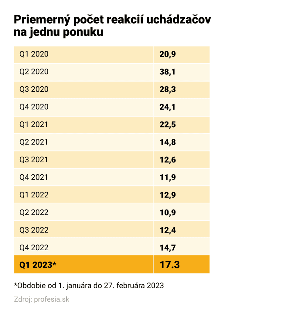 Keď uverejnila firma ponuku práce v januári či februári 2023, získala v priemere 17 životopisov. Vyplýva to z najnovšej analýzy najväčšieho pracovného portálu Profesia.sk.