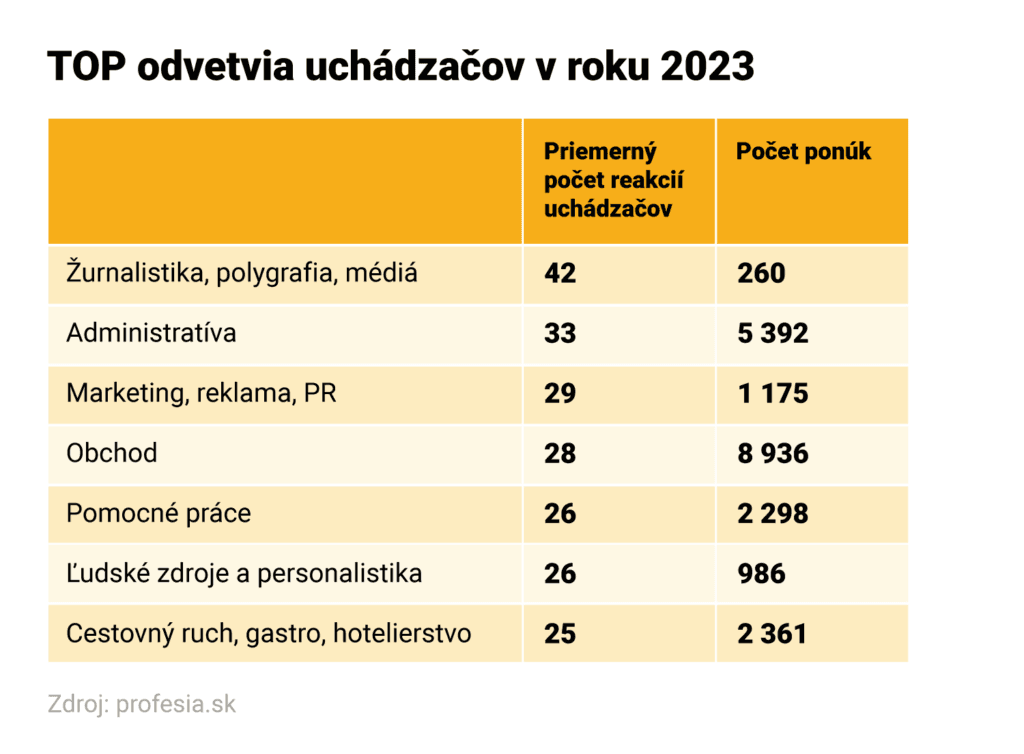 Keď uverejnil zamestnávateľ ponuku práce, ktorá spadala pod žurnalistiku a médiá, od uchádzačov získal v priemere 42 životopisov. V rovnakom období vlani bol priemerný počet odoslaných CV 29.