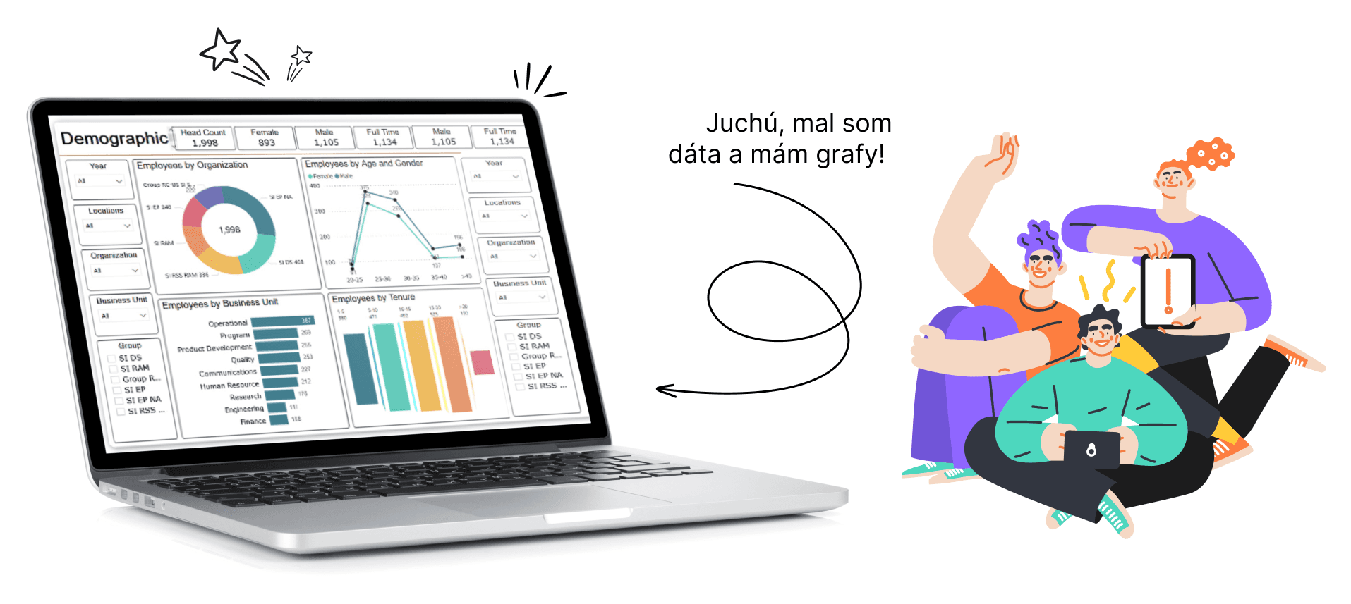 Nástroje BI úplne eliminujú časovo aj personálne náročné vytváranie HR reportov a štatistík:
