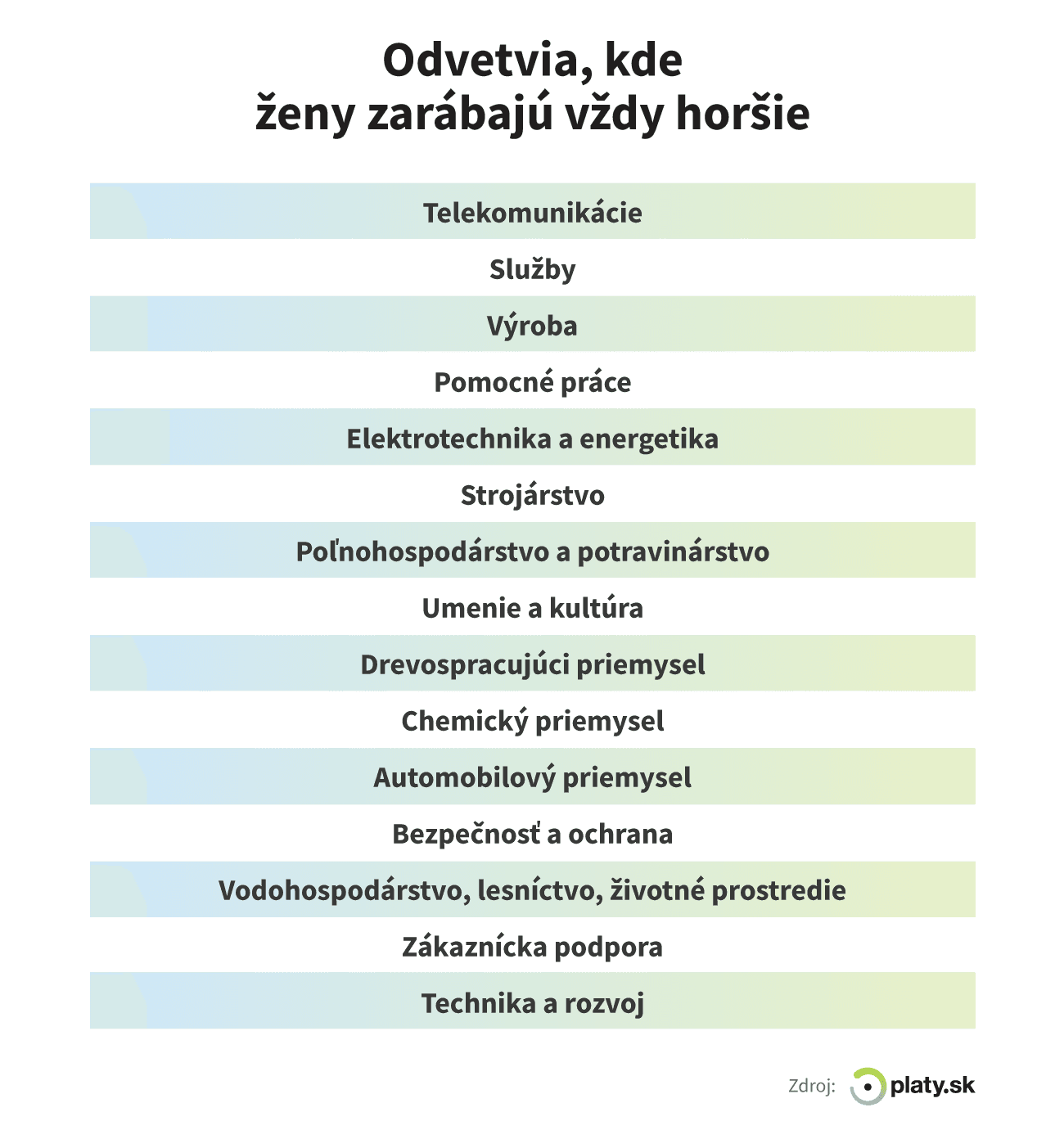 Naopak, analýza tiež objavila pozície, kde bolo vždy pravidlom, že zárobky mali lepšie zamestnanci ako zamestnankyne. Zo sledovaných 35 odvetví bolo takýchto presne 15.