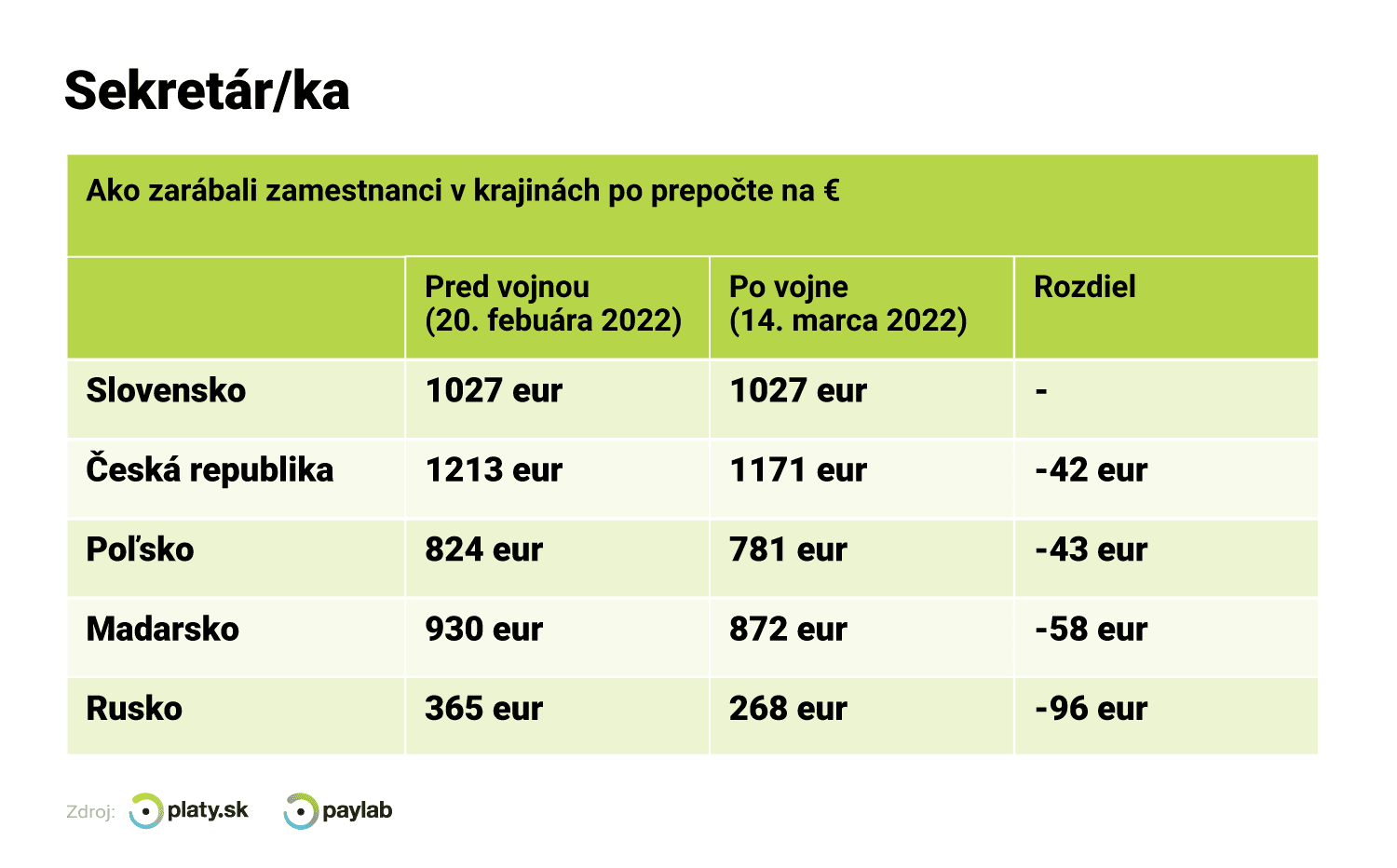Podobné platy ako výrobná pracovná sila majú v Rusku aj ľudia na pozícii sekretár/ka. Kým pred vojnou išlo v prepočte o 365 eur, dnes je to už iba 268 eur v hrubom.