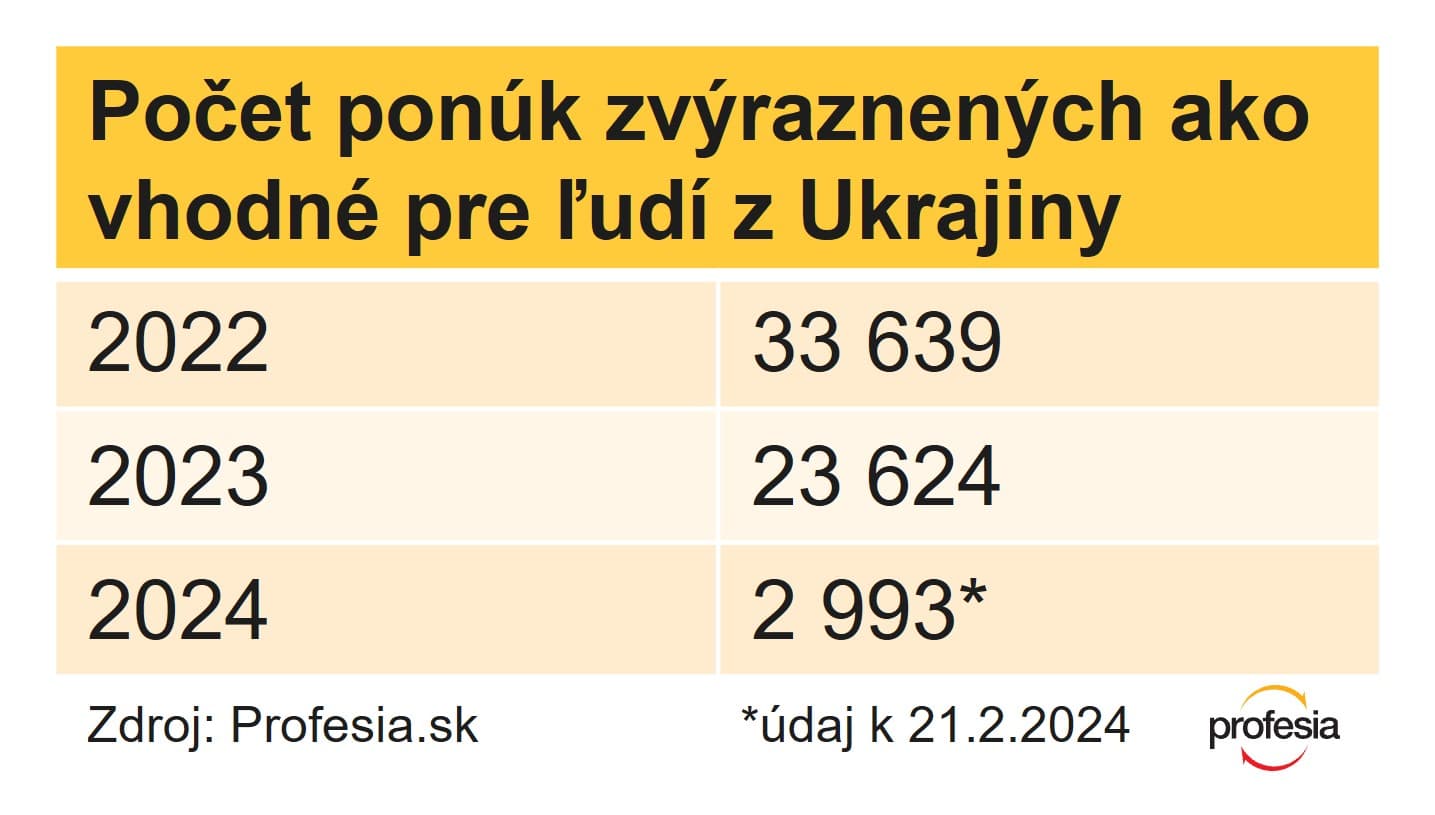 Najväčšie množstvo ponúk, ktoré firmy zvýraznili ako vhodné pre Ukrajinky a Ukrajincov, bolo prvé mesiace po začiatku vojny, no firmy tak robia aj naďalej. Aktuálne je na Profesia.sk zverejnených vyše 1 400 takýchto inzerátov. Spolu ich už bolo viac ako 60-tisíc.