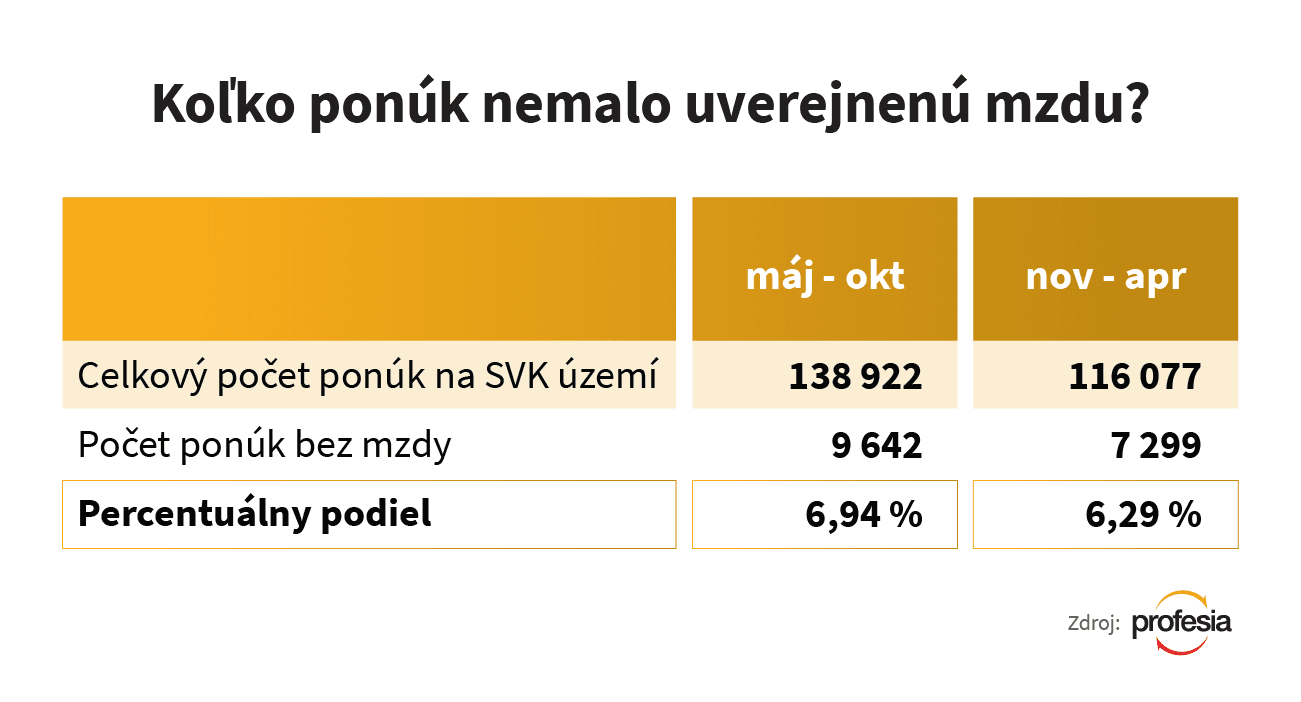 Analýza portálu Profesia.sk dokazuje, že drvivá väčšina pracovných inzerátov obsahuje informáciu o ponúkanom plate. Od mája do októbra 2018 malo plat uverejnených 93,06 percent inzerátov, ktoré ponúkali prácu na Slovensku.