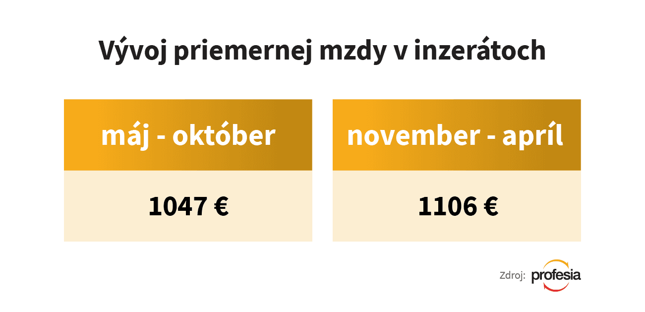 Priemerný ponúkaný plat v období od mája do októbra 2018 bol 1047 eur. Nasledujúci polrok narástla táto priemerná mzda na 1106 eur .