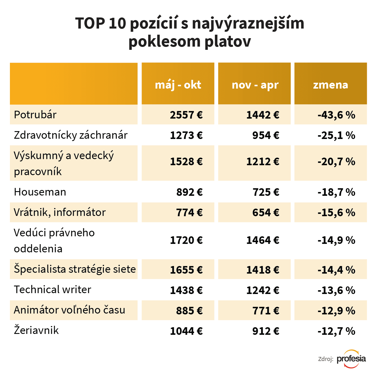 Ponúkané základné zložky mzdy klesali aj v pracovných ponukách na pozíciu zdravotníckeho záchranára, výskumného pracovníka, housemana, vrátnika, či vedúceho právneho oddelenia.