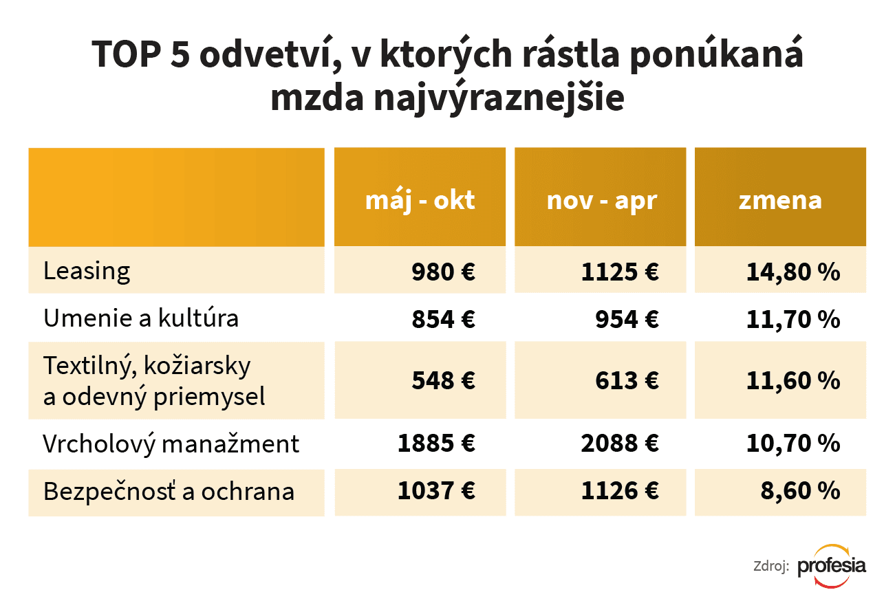 Ponúkané platy rástli výrazne aj v umení, textilnom priemysle, ale aj vo vrcholovom manažmente.