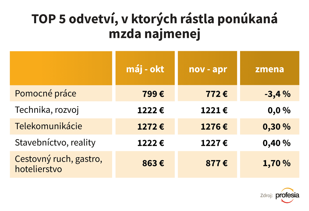 Ponúkané mzdy rástli najpomalšie ešte v odvetviach telekomunikácie, stavebníctvo a cestovný ruch, gastro a hotelierstvo.